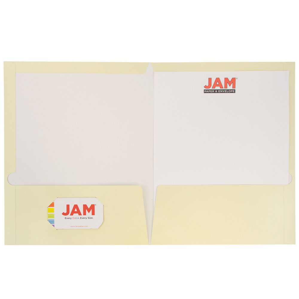 JAM Paper Glossy Two Pocket Folders, Ivory, 100/Pack