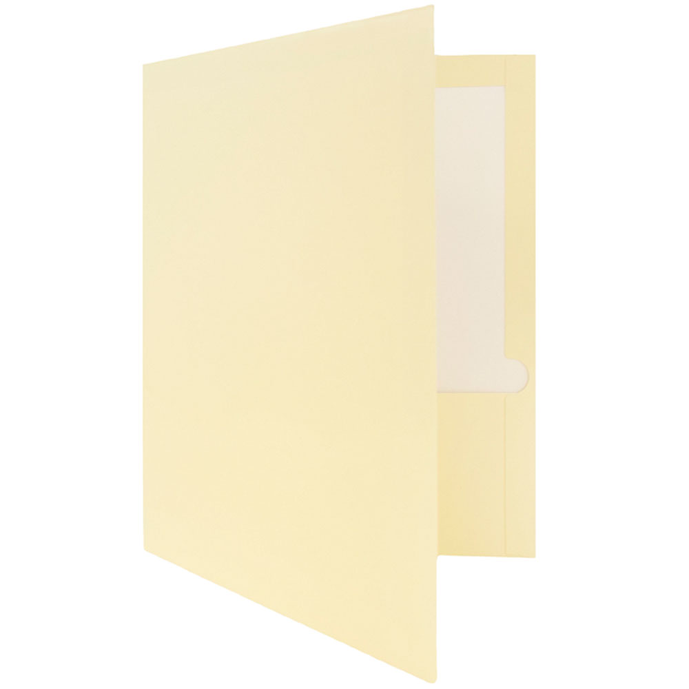 Color: Ivory Size: 9.5 x 11.5 inches Quantity: Box of 50 Glossy Folders Folders are highly durable, made of smooth cardstock, and have a High Gloss Finish. Includes: 2 pockets to keep your documents secure and a business card slot on the left pocket These folders are perfect for helping you stay organized at school, the office, home, or on the go.
