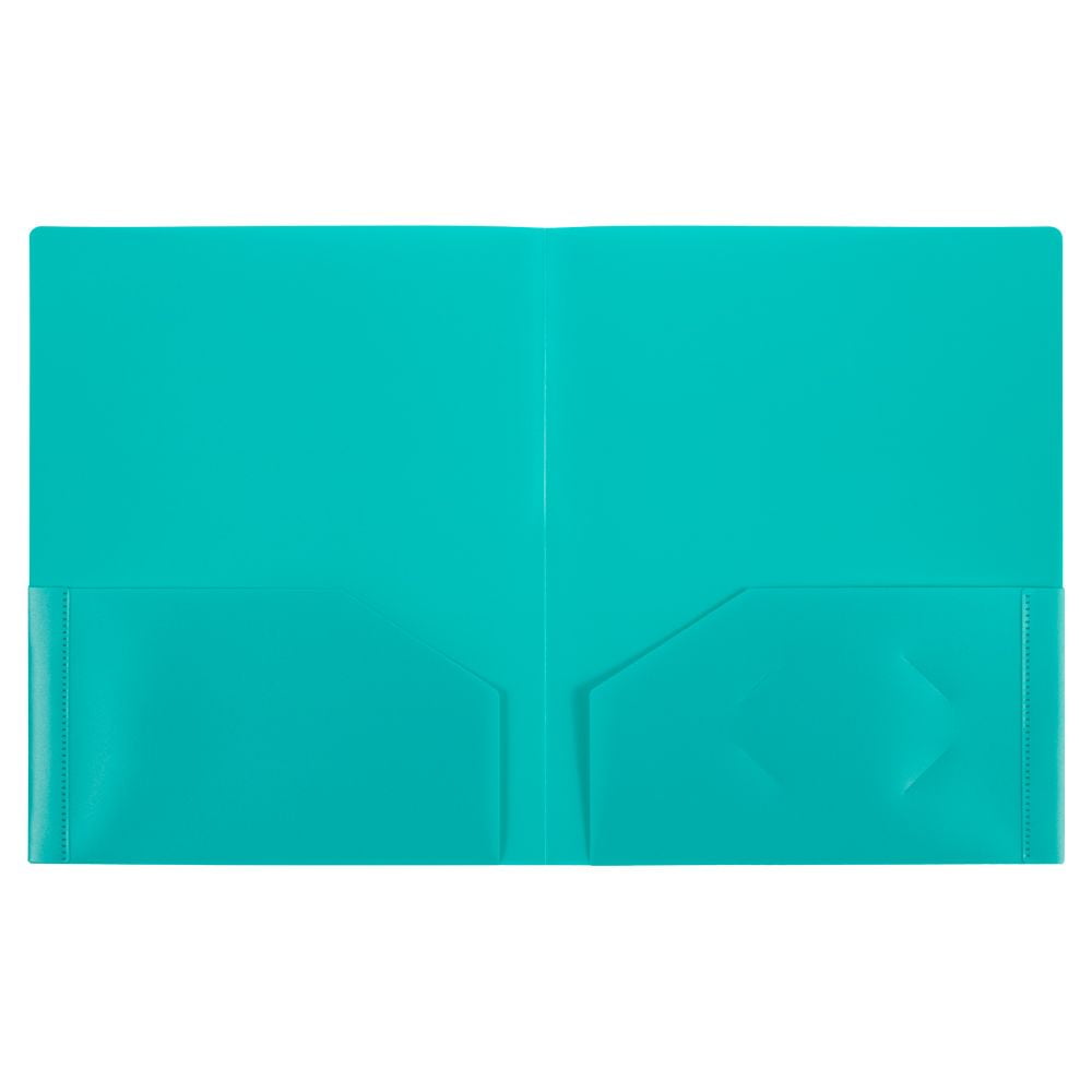 Color: Teal Size: 9 1/2 x 11 5/8 inches Quantity: 108 per box Our durable, smooth plastic folders have a convenient slot for business cards These folders are perfect for helping you stay organized at school, the office, home, or on the go!