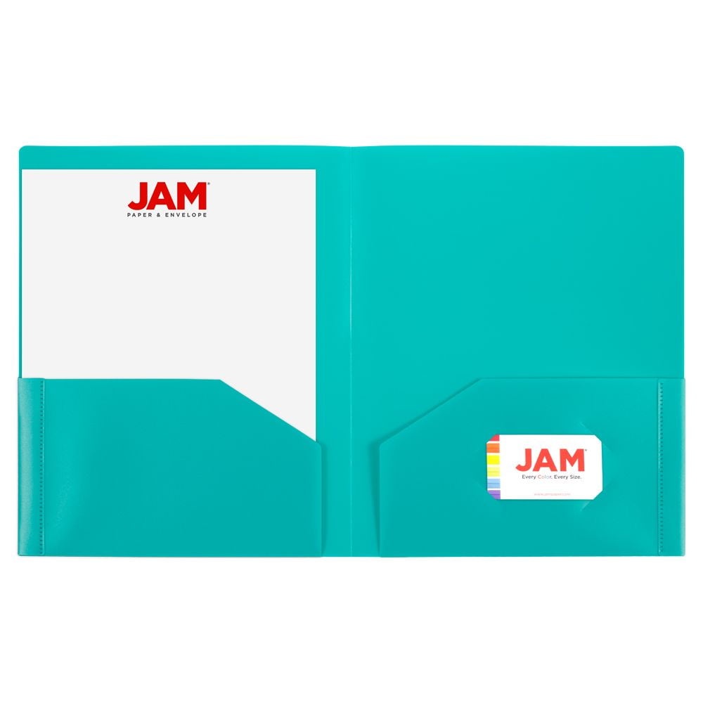 JAM Paper Heavy Duty Plastic Two Pocket Presentation Folders, Teal Blue, 108/pack
