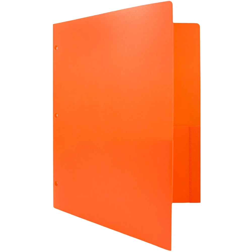 Color: Orange Folder Size: 9 1/2 x 11 1/2 inches Quantity: 108 folders per box Made with highly durable, flexible, smooth plastic, and is 3 hole punched for binder accessibility Perfect for students and business professionals alike to keep papers together and organized.