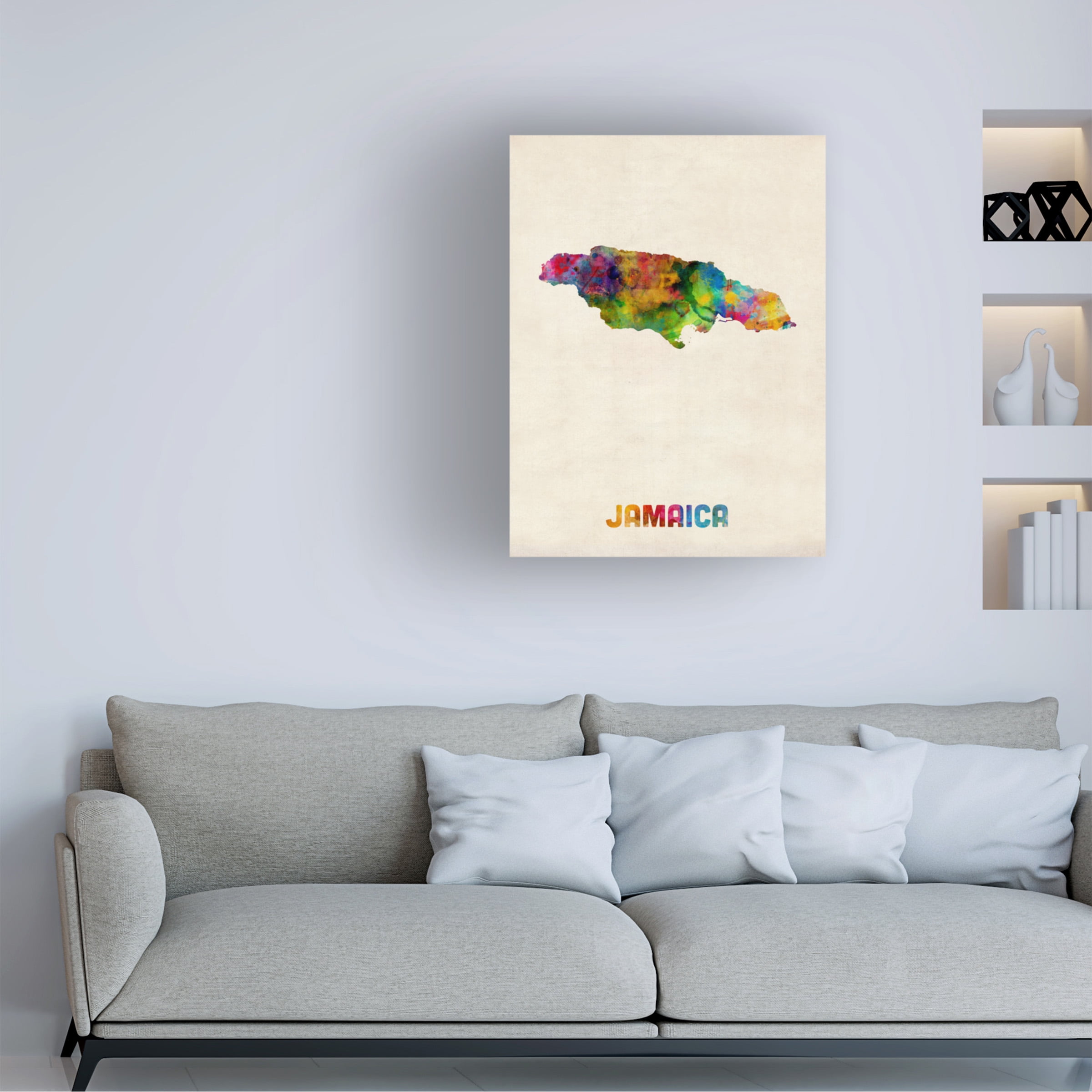 This ready to hang, gallery-wrapped art piece features a colorful watercolor map of Jamaica.Art and design were always Michael’s favorite subjects at school. He was fortunate to land a job as a graphic designer at one of London’s most prestigious publishing companies after leaving University. After 12 highly enjoyable years Michael Tompsett made the decision to pursue a full-time career creating his own work. The freedom and time to be able to focus solely on his own projects has been a wonderful experience. Although Michael likes to experiment with different styles and subjects, his main focus is on map art. He enjoys looking for unique and interesting ways to depict something which is very familiar. Maps are visual representations of the world we live in, a world which is incredibly diverse. Apart from maps, Michael Tompsett creates urban landmark and cityscape designs.