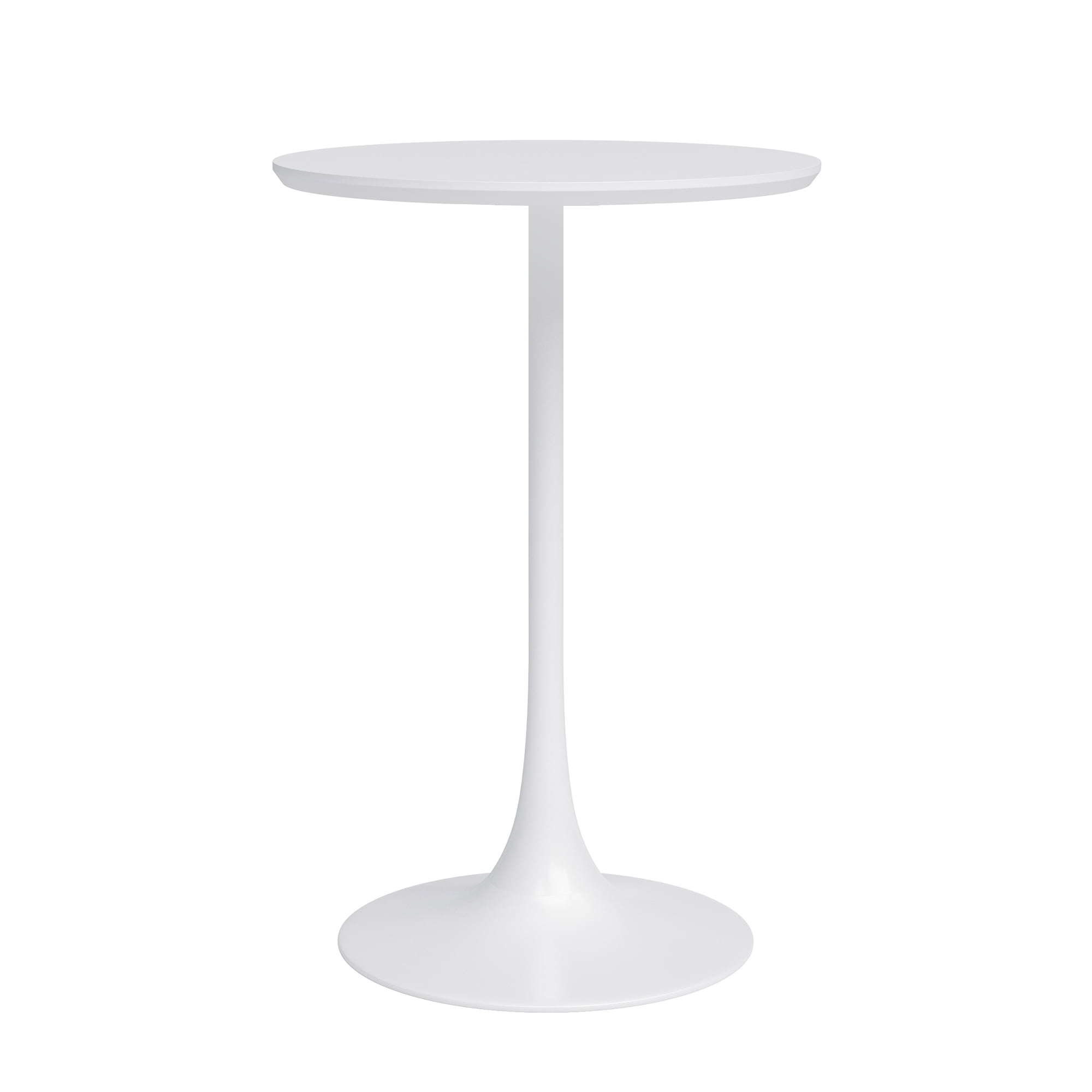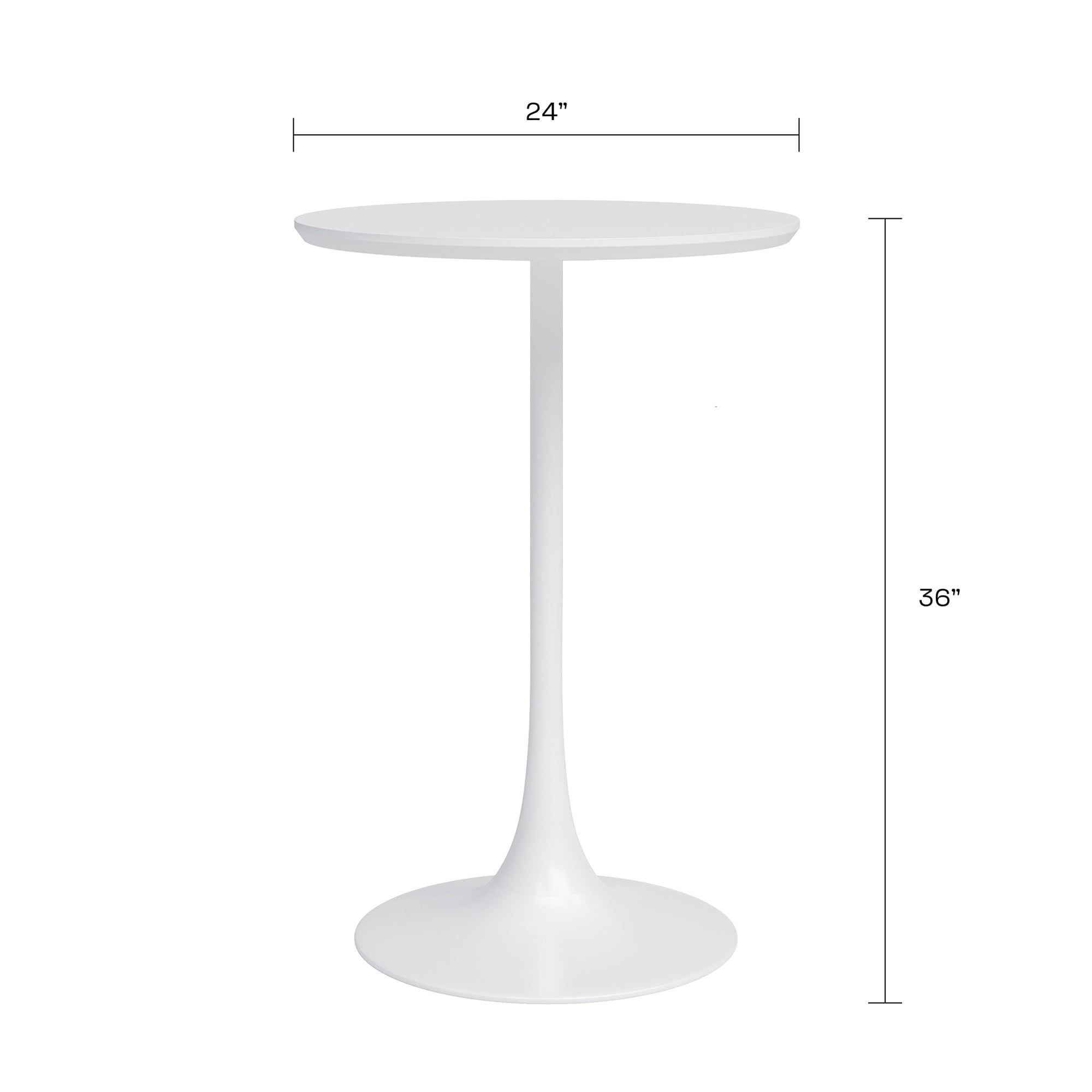 Thoughtfully designed, and wonderfully chic, the Kurv Counter Cafe Table should be a staple in every modern space. Whether as a dining table for small spaces, a chic desk (think standup desk!), or a cocktail table, it’s a versatile piece that never goes out of style. The minimalist design blends well in any setting, and can fit nicely in even the coziest nooks with its round top design. The compact size and shape is easy to configure with one to four stools comfortably. The simple design makes it convenient to mix and match. The high gloss finish and beveled design of the table top is easy to clean, and the sturdy single steel base is a true space saver. Minor assembly required. Features: Timeless midcentury inspired style Sturdy steel base Round top design ideal for multiple spaces and nooks Beveled table top edge Space saving pedestal base Minimalist silhouette that complements any space Easy-to-clean, high gloss surfaces Measures 24″D x 24″W x 36”H Specifications: Product Color: White Frame Material: Steel (Metal) & Painted MDF Wood Product Dimensions: 36″ H x 24″ W x 24″ D Product Weight: 22 lbs Weight Capacity: 220 lbs Warranty: 1 Year
