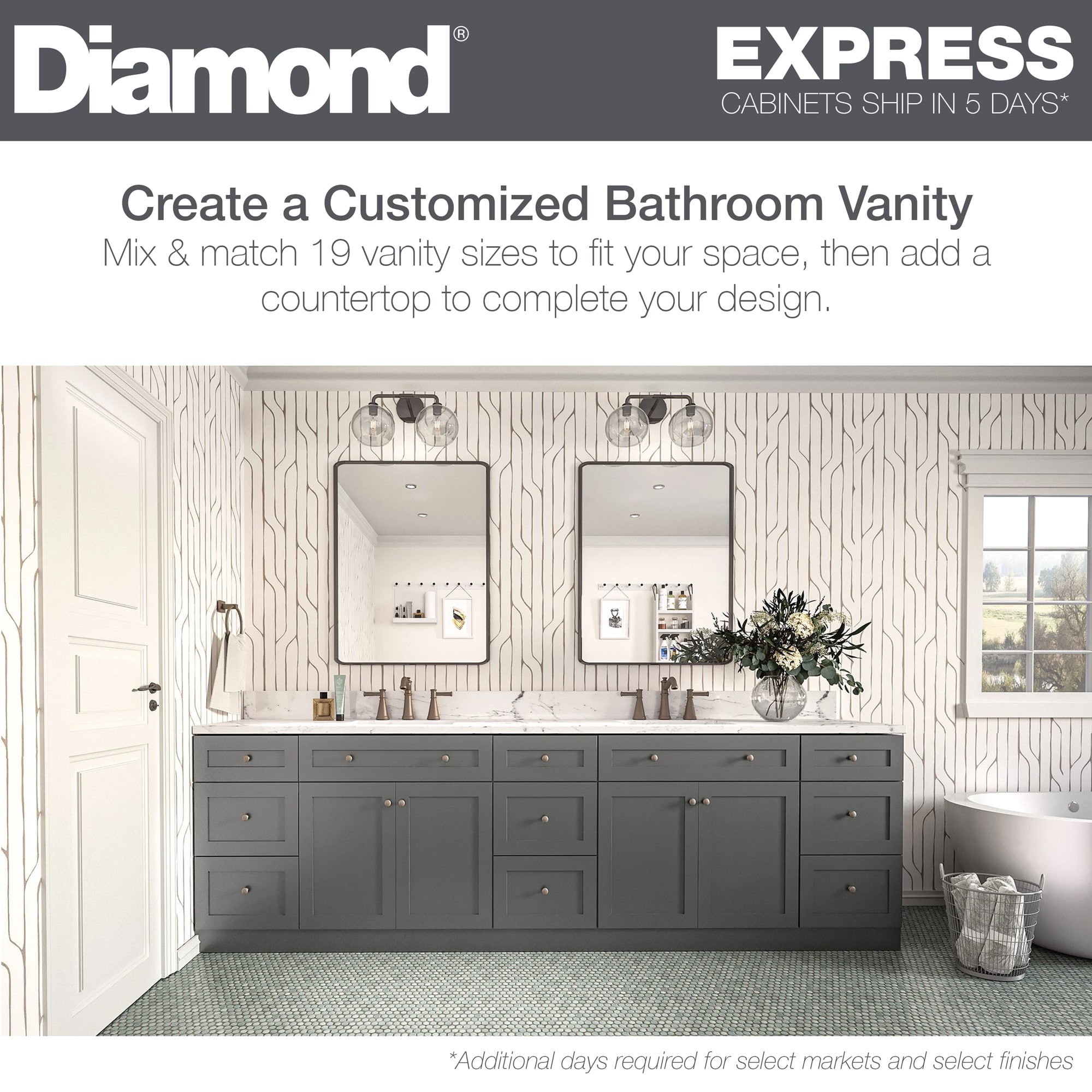 Diamond Express offers quality cabinets fast! With trend-forward finishes and a variety of fully assembled all-plywood cabinet solutions for kitchens, bathrooms, laundry rooms, offices, and more, you can truly customize any space to fit your unique needs. Each cabinet is crafted to the highest cabinetry standards and is backed by our Limited Lifetime Warranty. Our Jamestown assembled cabinet collection features a wide variety of wall, pantry, vanity, and base cabinets with a Shaker-style profile that creates simple, clean lines for a timeless look and extraordinary versatility.