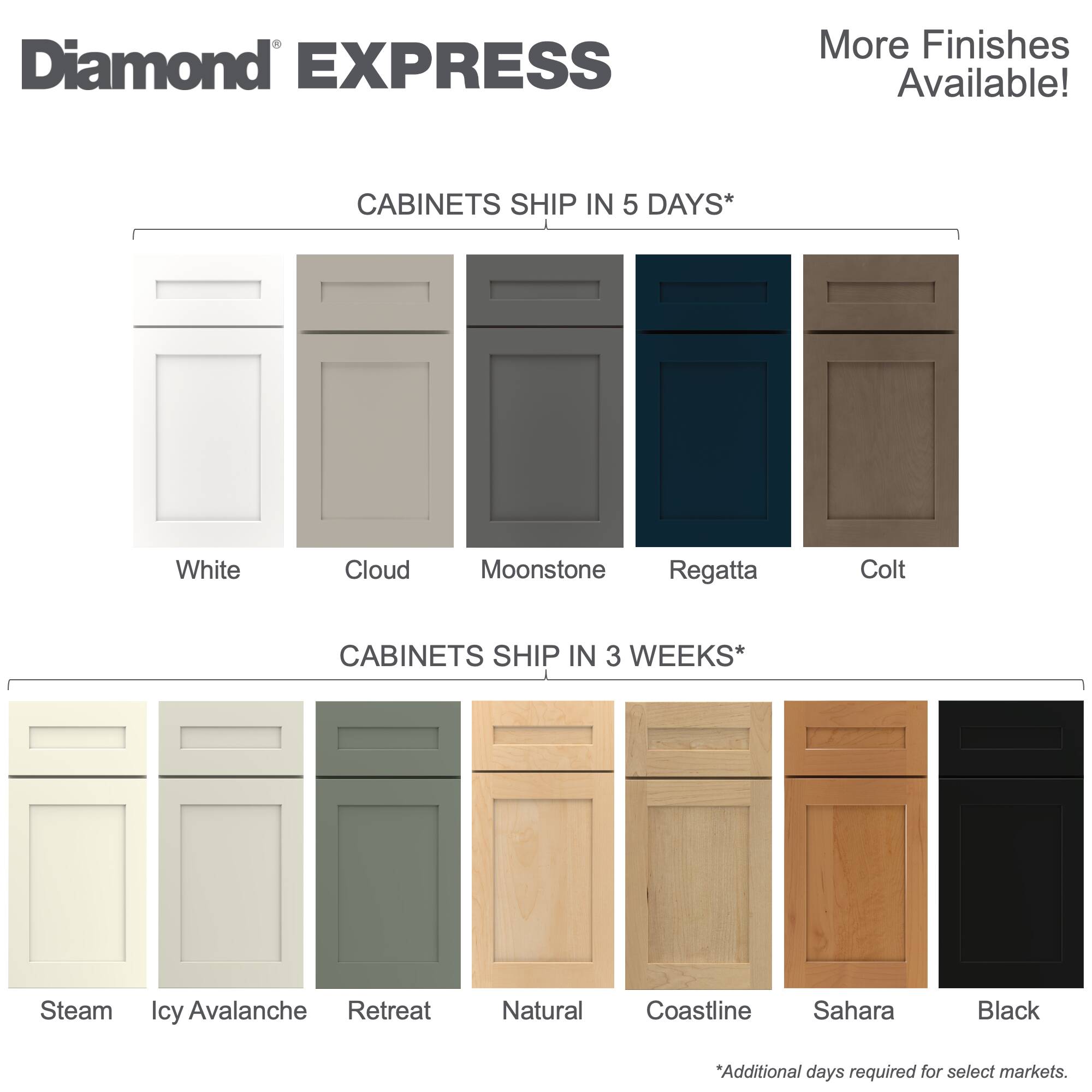 Diamond Express offers quality cabinets fast! With trend-forward finishes and a variety of fully assembled all-plywood cabinet solutions for kitchens, bathrooms, laundry rooms, offices, and more, you can truly customize any space to fit your unique needs. Each cabinet is crafted to the highest cabinetry standards and is backed by our Limited Lifetime Warranty. Our Jamestown assembled cabinet collection features a wide variety of wall, pantry, vanity, and base cabinets with a Shaker-style profile that creates simple, clean lines for a timeless look and extraordinary versatility.