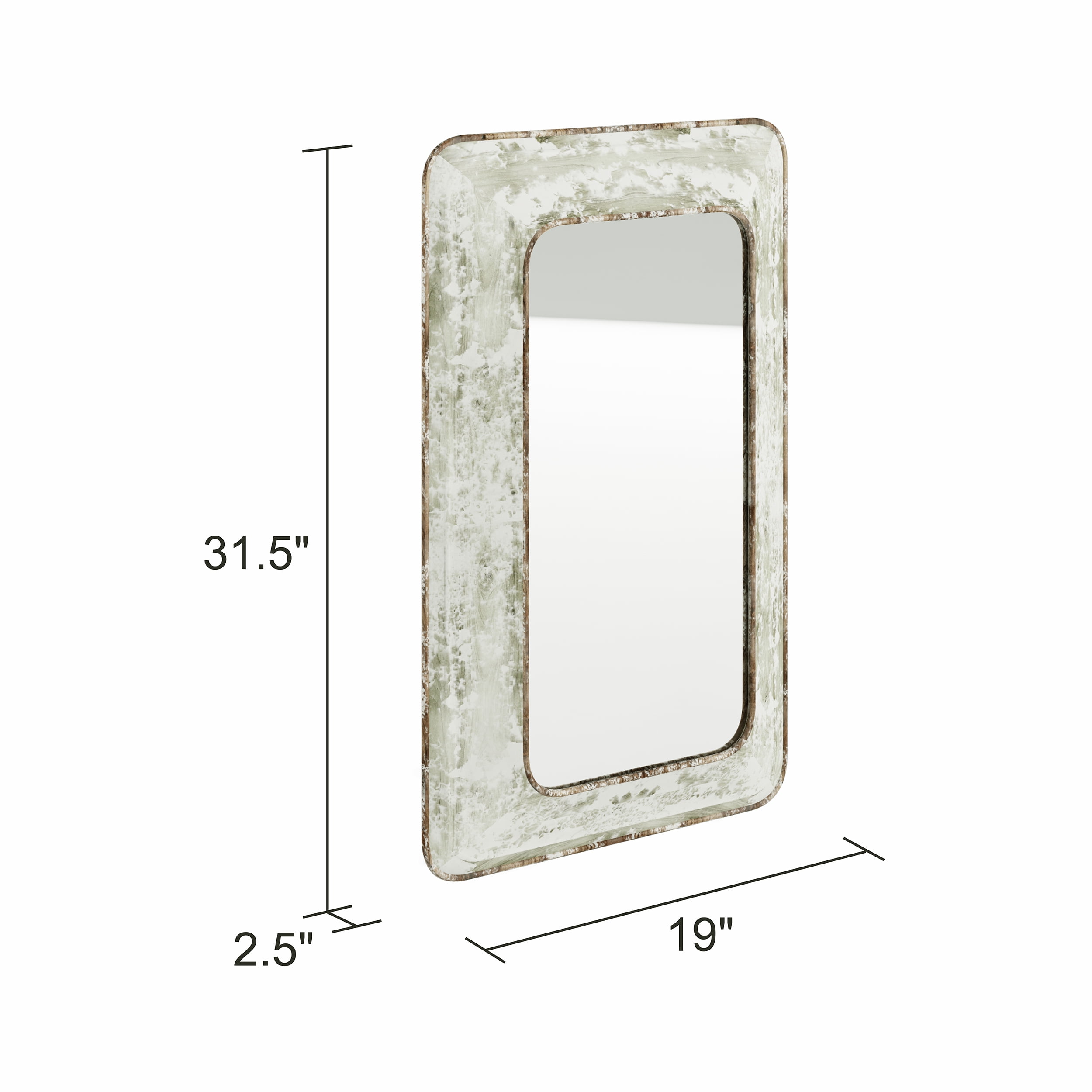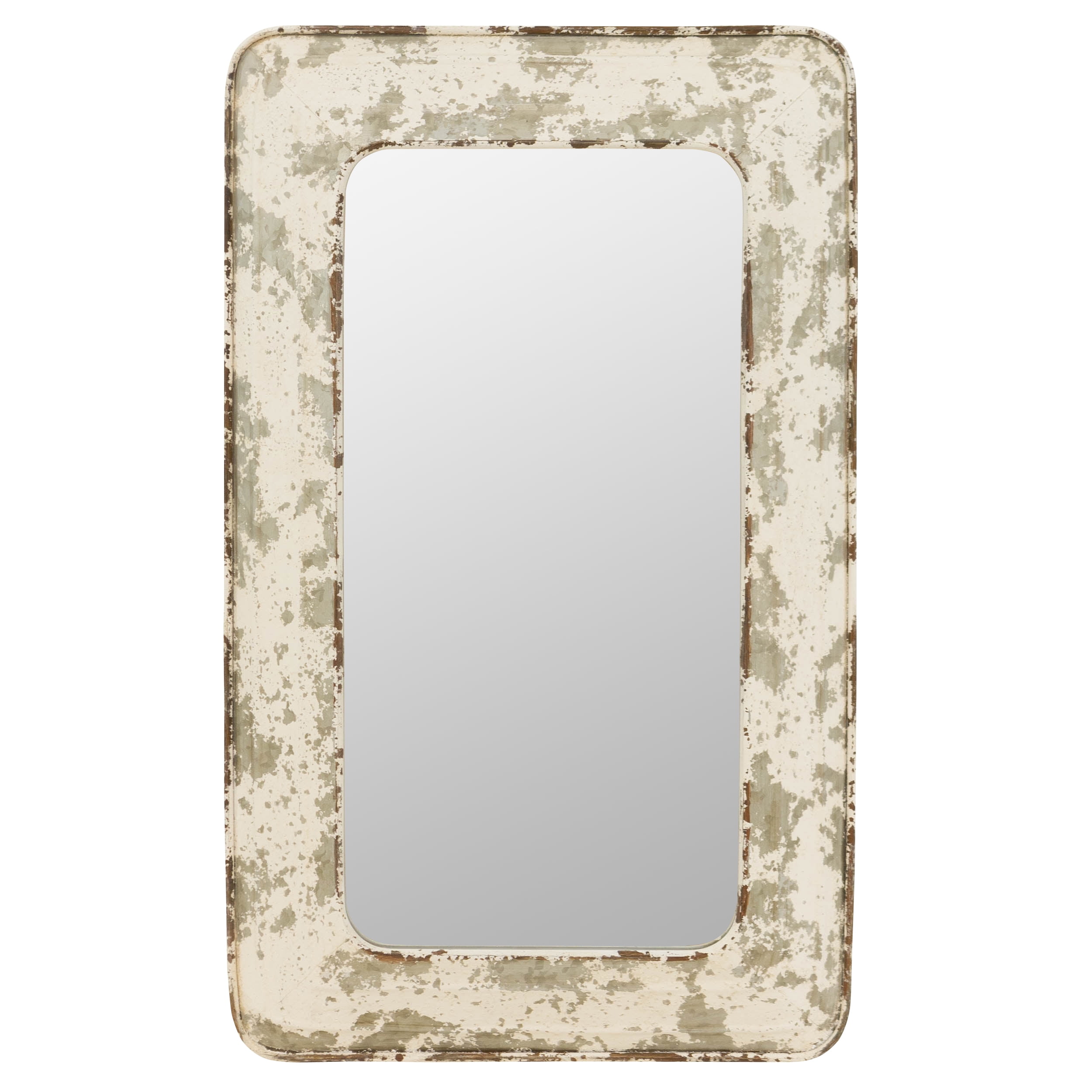 Featuring an aged worn look, this wall mirror evokes the best parts of industrial and farmhouse chic. Its versatile and fits in either style thanks to its metal frame and distressed white finish. Suitable for hanging vertically or horizontally, its charm will wow you every time you see it. Features Frame crafted from metal Distressed white finish Perfect for farmhouse or industrial spaces Ready-to-hang vertically or horizontally Hangs easily using 2 screws or nailsSpecifications Color: White Material: Metal Mirror Size: 24 x 12″ Dimension: 31.5″ H x 19″ W x 2.5″ D Weight: 12.5 lbs – SKU: ASPR1967