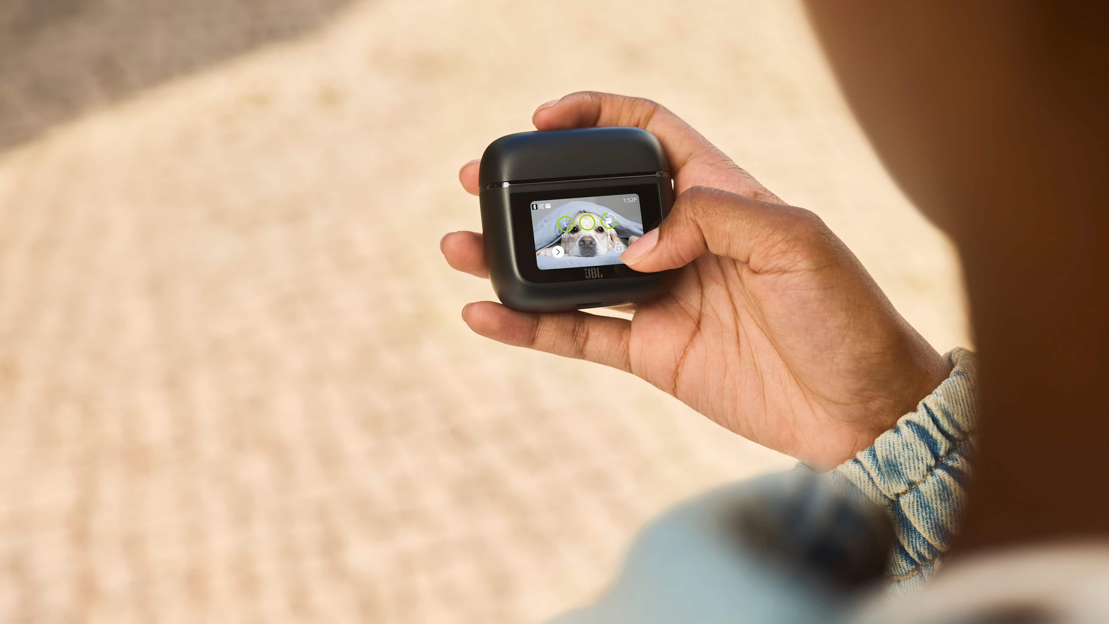 Leave your phone in your pocket. JBL Tour Pro 3’s newly redesigned Smart Charging CaseTM has all the features you need to fully control and customize your listening experience and the earbuds settings in multiple languages, right from the case. Use the bigger, clearer 1.57” touchscreen to see what song is playing or who’s calling you. Check the dynamic lock screen to get info on battery life status, time, messages etc.