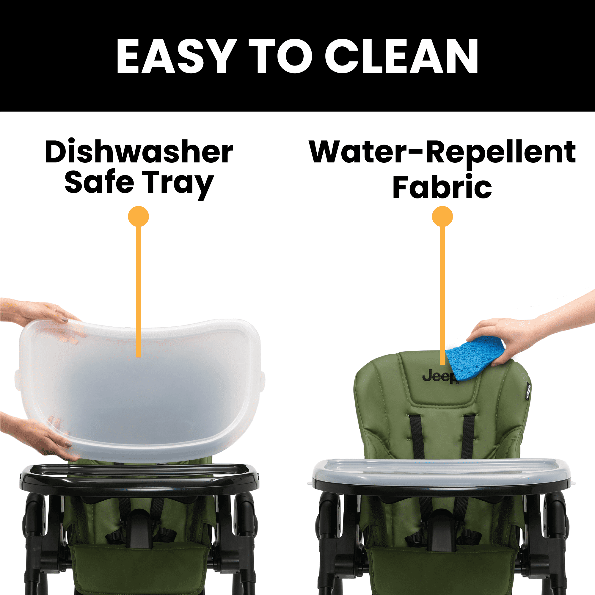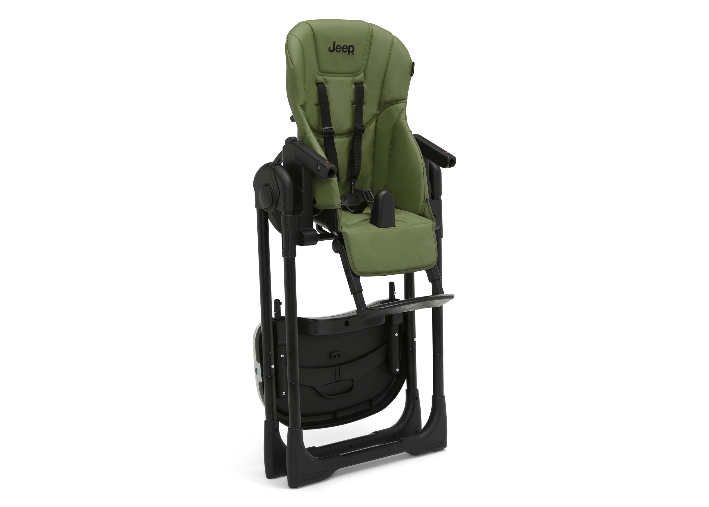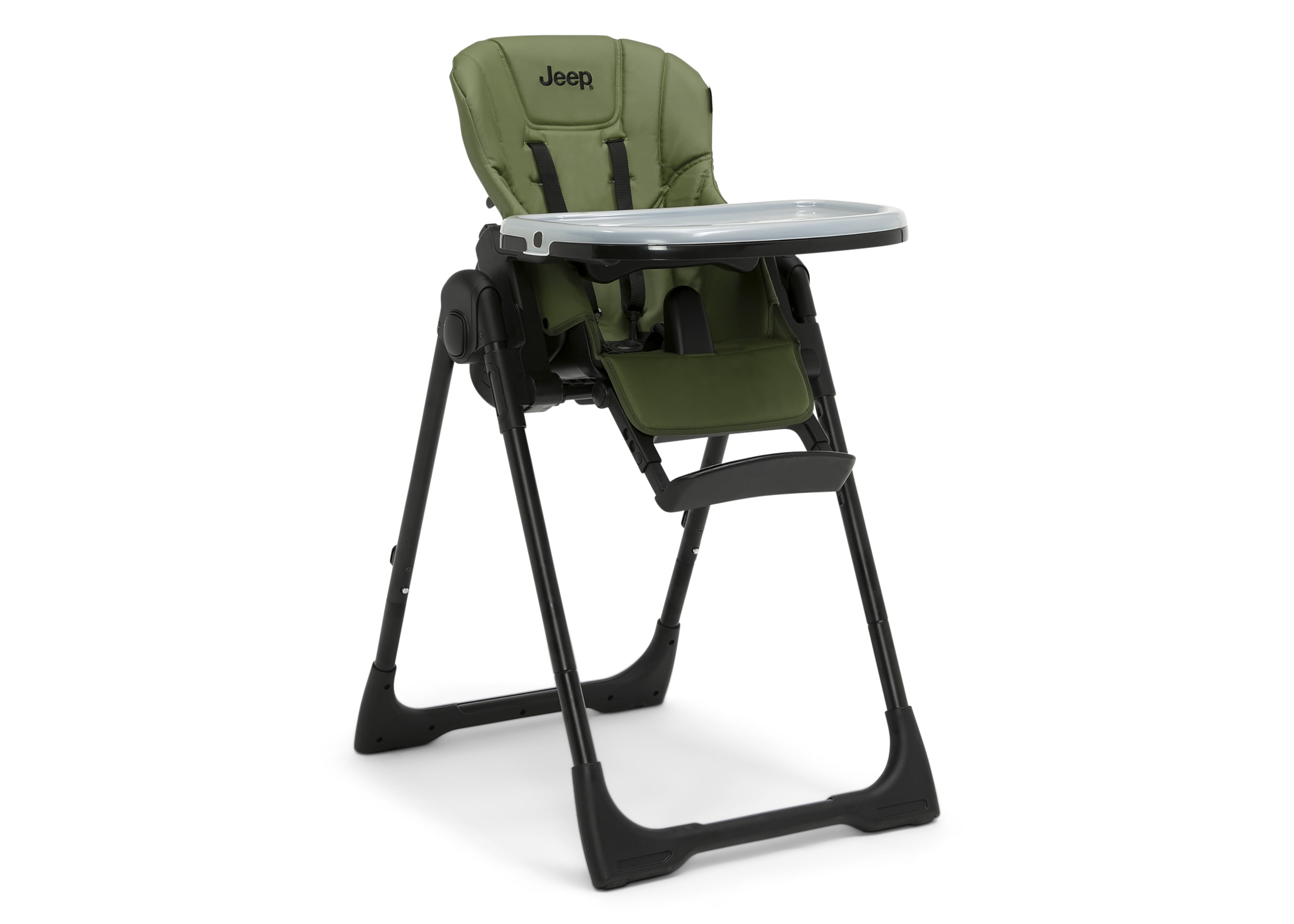 Jeep by Delta Children Classic Convertible 2-in-1 High Chair for Babies and Toddlers with Adjustable Height, Recline & Footrest – Dishwasher Safe Meal Tray, Olive Green