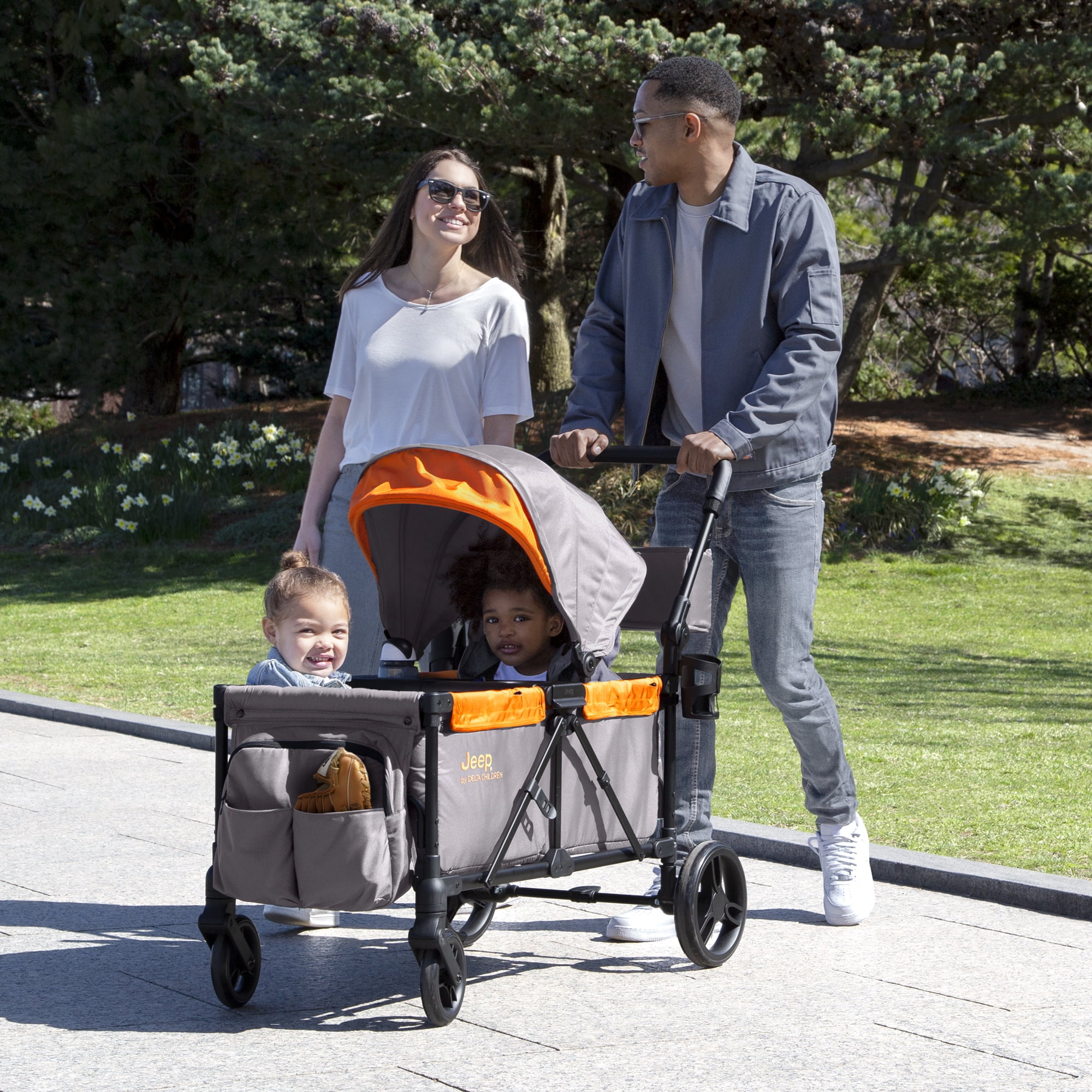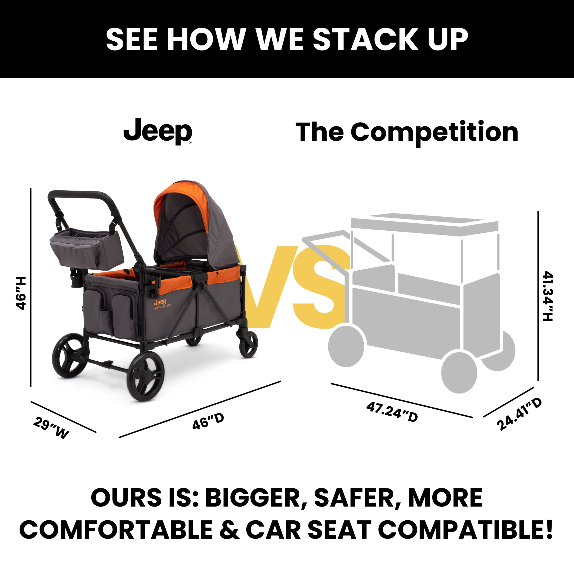Jeep Sport All-Terrain Stroller Wagon by Delta Children – Includes Canopy, Parent Organizer, Adjustable Handlebar, Snack Tray & Cup Holders, Grey/Bonfire