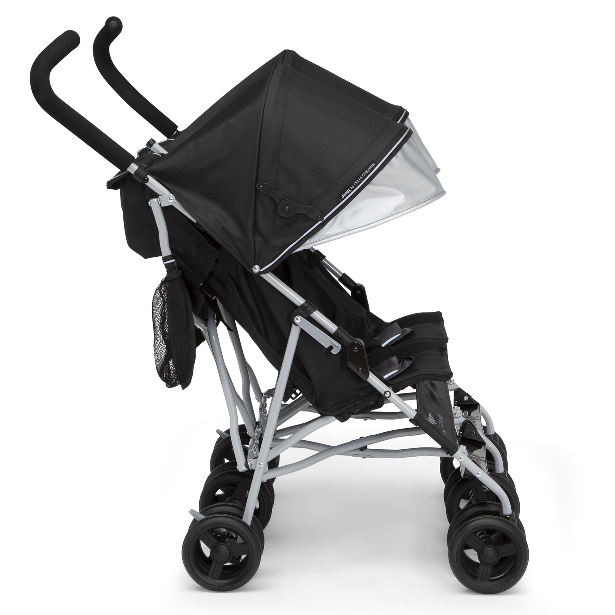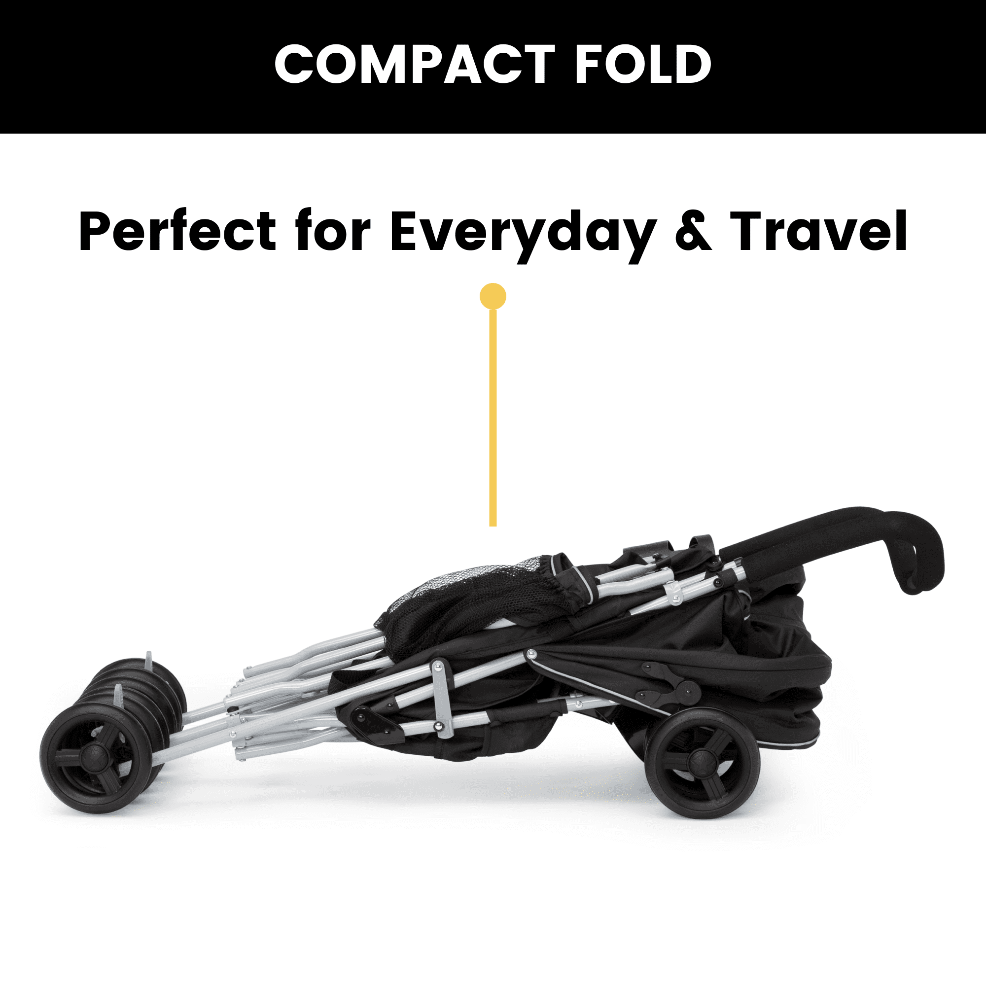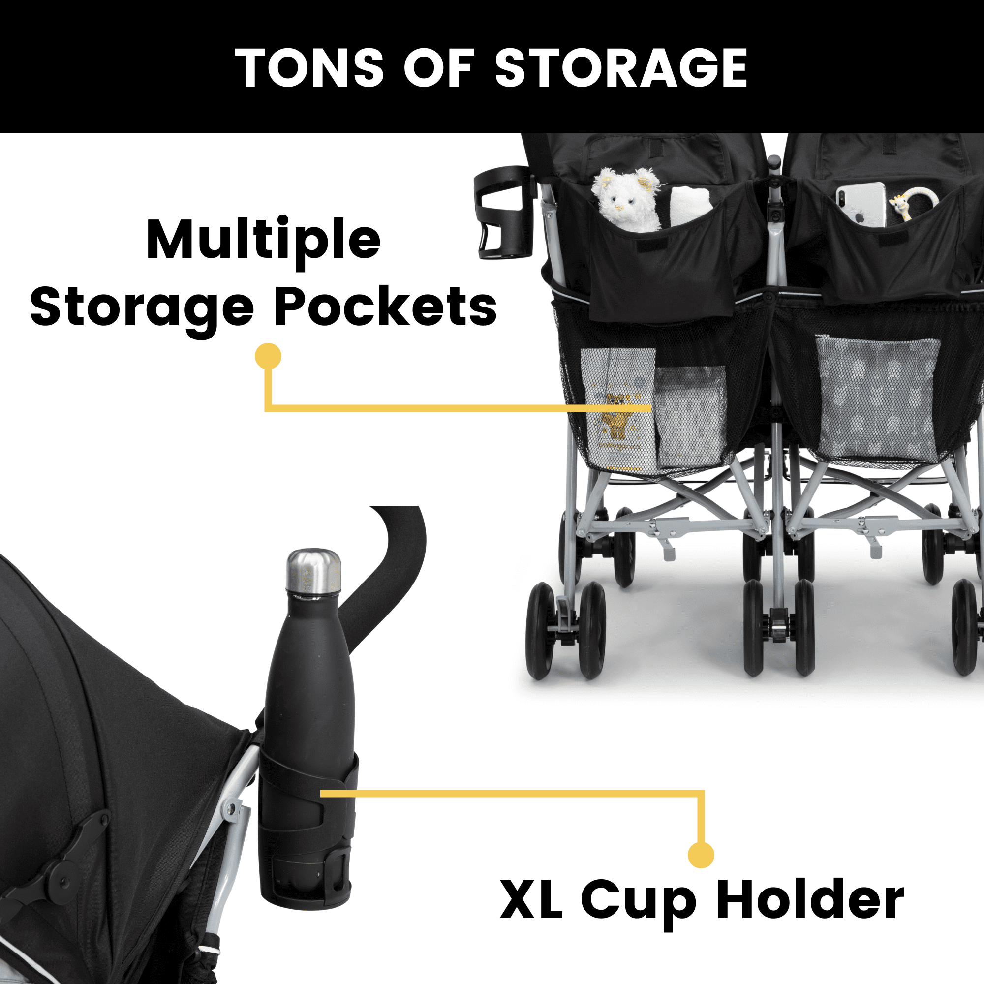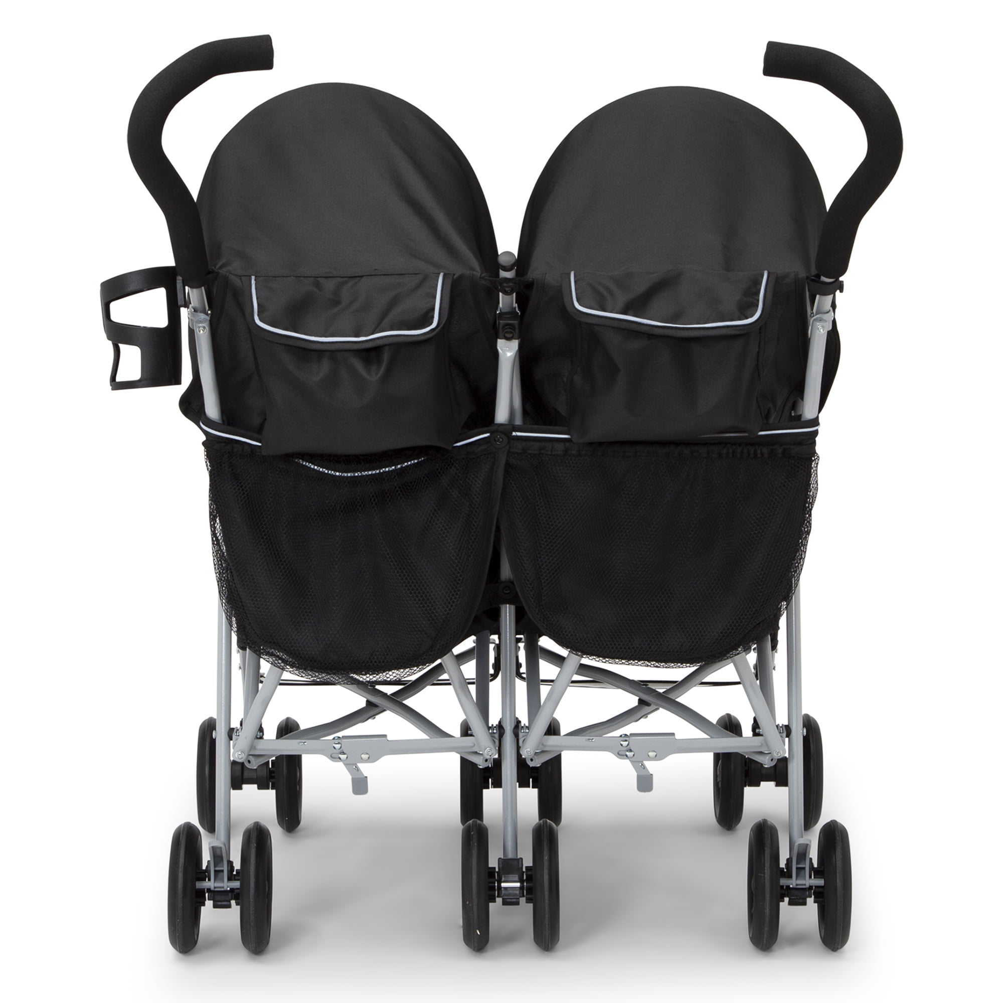 SMOOTH RIDE: Swivel front wheels feature precision technology for outstanding control and effortless push, easier than ever to glide, turn and maneuver | Separate back step brakes | Puncture-proof/never flat 5.5-inch tires are durable LIGHTWEIGHT: The ultimate in convenience, this lightweight double stroller has a durable frame that only weighs 19.4 lbs. COMPACT FOLD: The easy compact umbrella fold with carry handle and manual lock is ideal for travel or everyday use | Meets theme park size requirements | Folded dimensions: 19″L x 9″W x 46″H DESIGNED FOR COMFORT: Keep kids comfy with calf rests and footrests | Ergonomic handles | Extendable sun visors have UPF 50+ protection | 2 mesh storage pockets and extra-large parent cup holder SAFE OPTION: JPMA certified | 5-point safety harnesses | Reflective piping on shoulder pads | Recommended for ages 9 months up to 35 lbs. per seat (70 lbs. total) | Assembled dimensions: 32.5″L x 29.7″W x 38″H