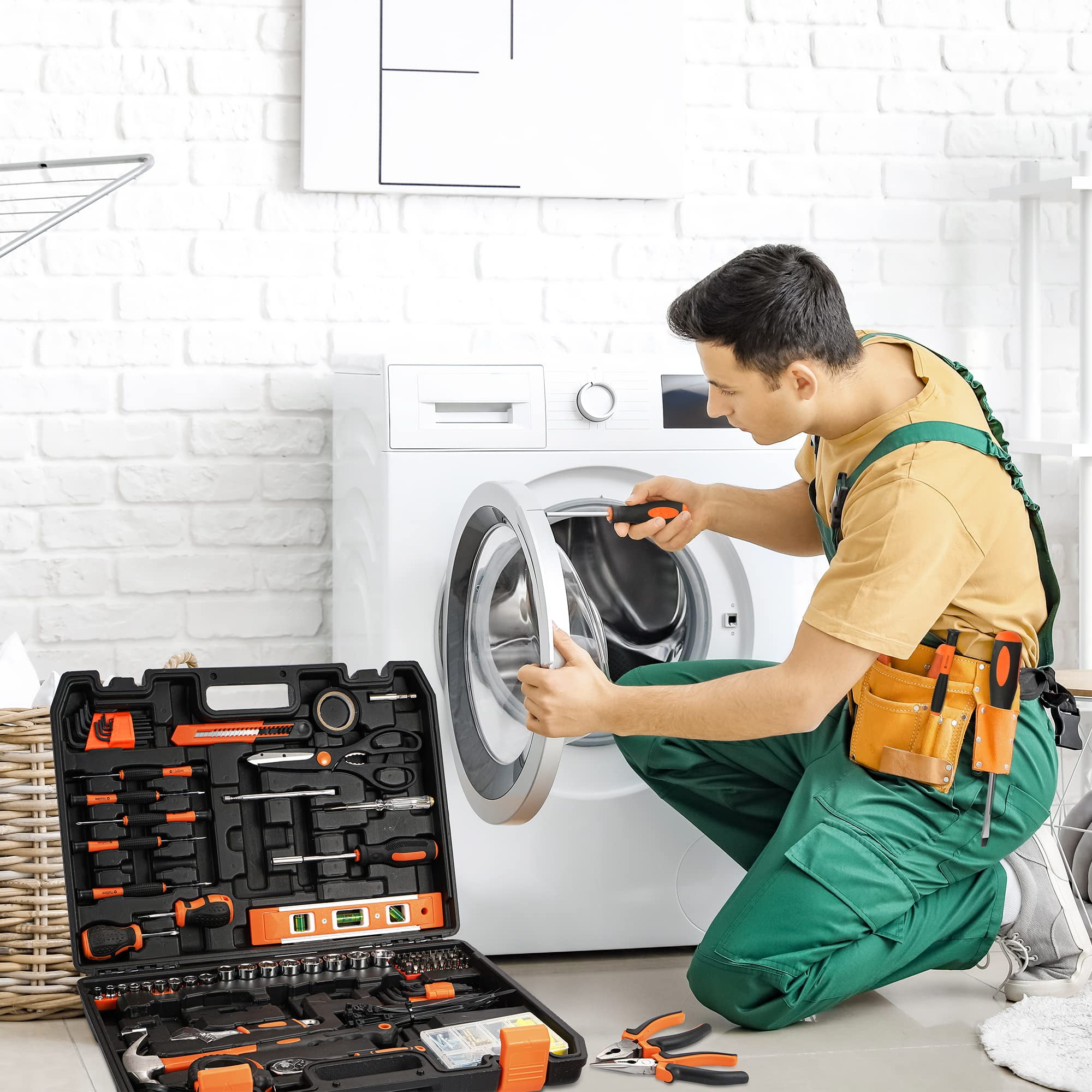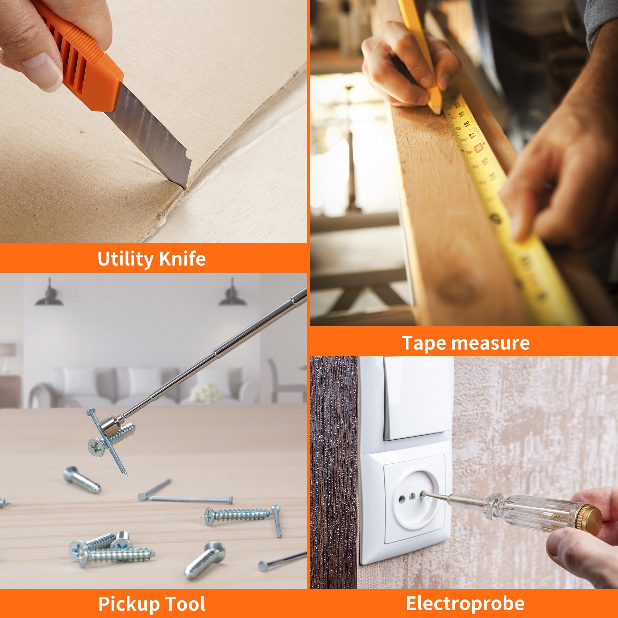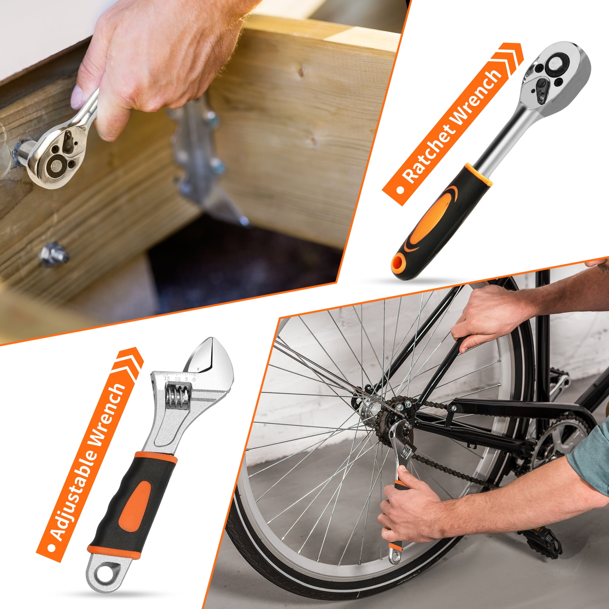????️【COMPLETE HOUSEHOLD TOOL SET】 Contains tools needed for small repairs and basic DIY projects around the house. Perfect for Handyman’s, repairmen, mechanics, body shops etc. Also a great tool set to have at home, garage and the workshop. ????️【EASY TO CARRY & STORAGE】 This tool set comes with a sturdy case to protect and house all your tools in one place. This makes it easy to carry tools around to your area of work whilst keeping everything neatly organized and ready to store away when you’re done. ????️【WIDE RANGE OF TOOLS】 Tool kits for household comes with a rich collection of tools to suit any job. You will receive combination wrenches, long nose pliers, polished quick release ratchet, adjustable wrench, rip claw hammer, measure tape rule, drive sockets and more. ????️【HIGH QUALITY BUILD QUALITY】 Forged from high-quality steel and finished in high-polish chrome provides plenty of strength, durability, and anti-corrosion protection. All the tools meet or exceed ANSI critical standards. ????️【COMPACT TOOL SET】 The case is tight and compact, and features a dirt-resistant design with a diamond shape pattern. The overall dimensions of the small tool set case is 16.9″ x 8.7″ x 3.2″. Overall, this basic tool set has a net weight of 8.8 lbs. ????【IDEAL GIFTS】 This tool set is a great option for housewarming, corporate, and college-bound students. It contains the tools needed for most small repairs around the house, making it an option for homeowners and DIY enthusiasts.