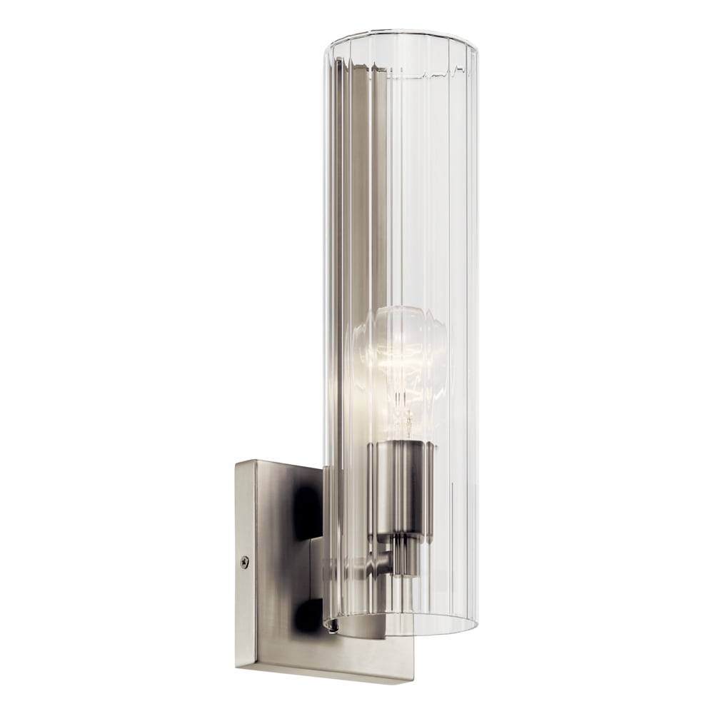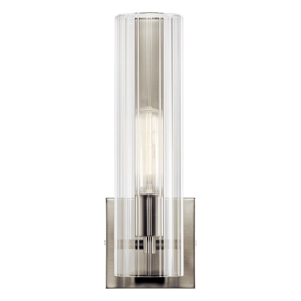 The Jemsa wall sconce’s on-trend clear fluted glass exudes sophistication. Its refined finish effortlessly harmonizes with your space. With its elongated silhouette, this exquisite sconce becomes a focal point, casting a welcome glow on the sides of your bed or fireplace.