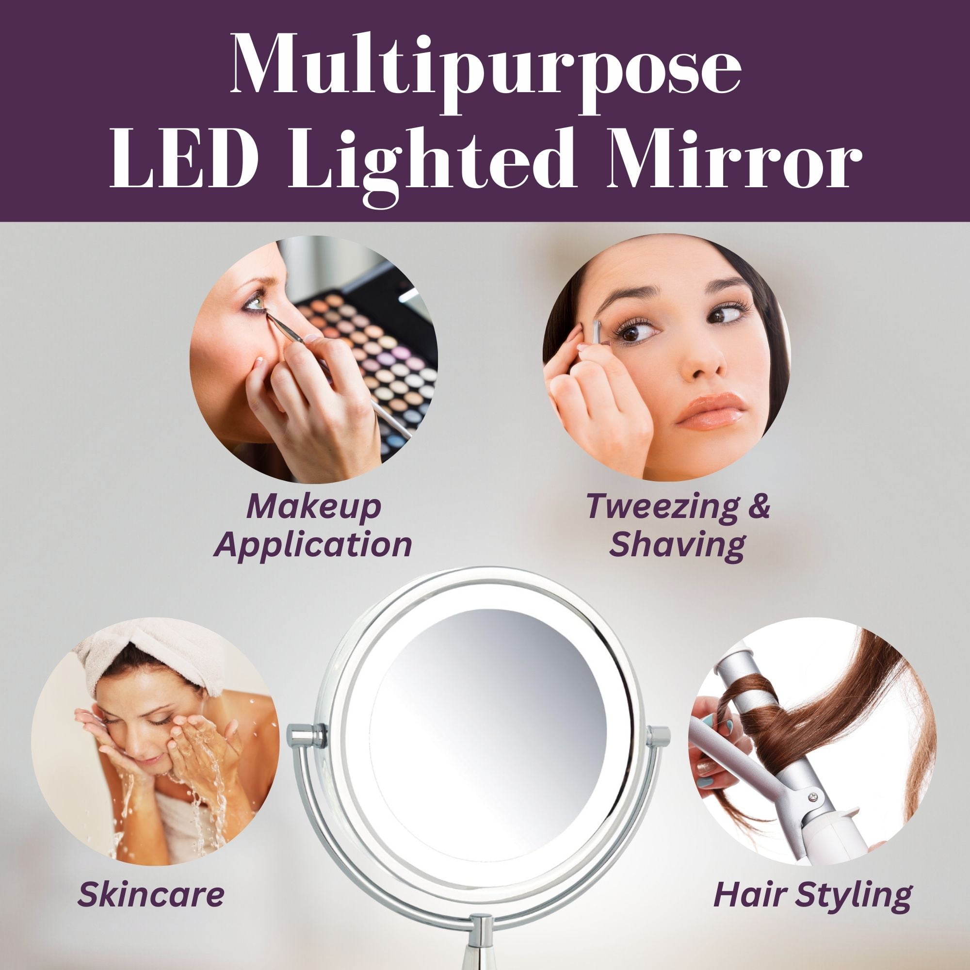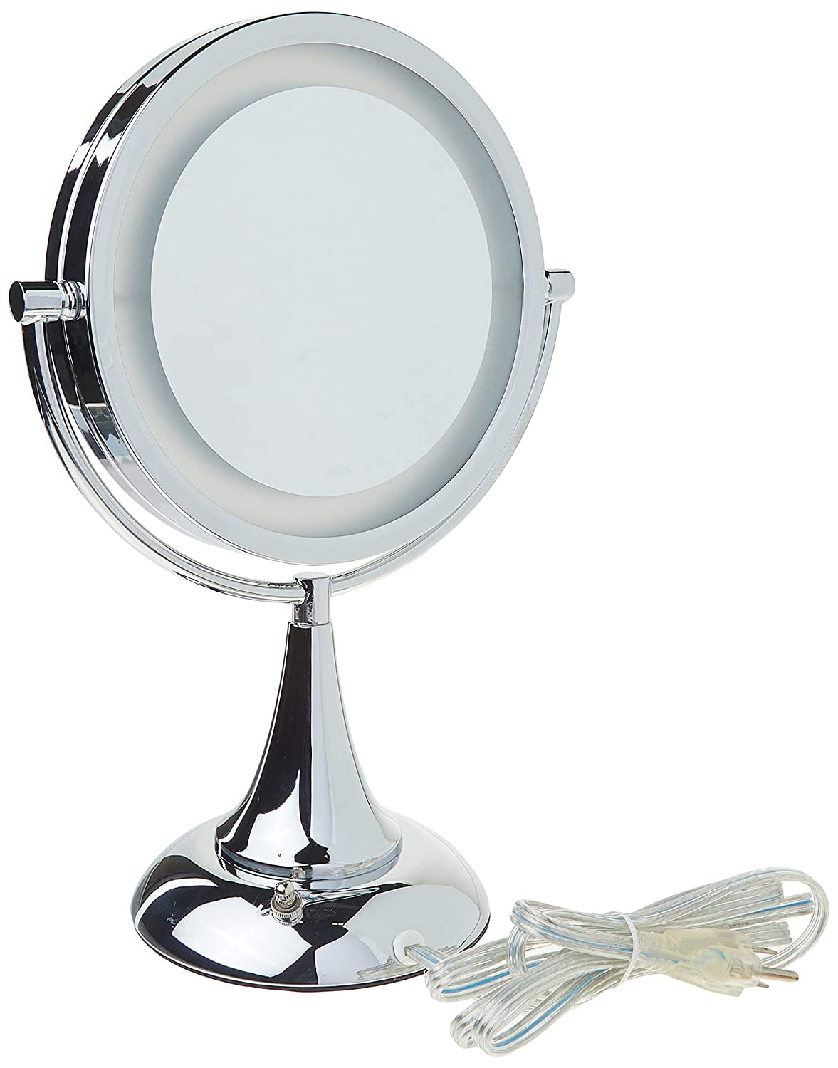 The HL8510CL is a sleek mirror that can help complete your makeup routine. Add a touch of glamour to your home with this attractive LED lighted mirror. The modern chrome finish helps protect against moisture and condensation. This tabletop mirror has a smooth 360-degree swivel rotation and stands 15-inches tall. Now applying makeup is easier than ever with the 8x and 1x mirror magnification.