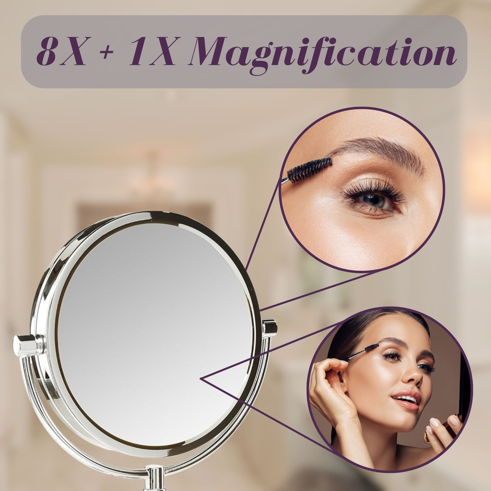 TABLETOP VANITY MIRROR – This sleek, circular mirror looks stunning on any vanity or bathroom counter. The modern, matte black base matches a variety of home styles and aesthetics. This tabletop mirror is great for getting ready, especially for styling hair and applying makeup. The magnification offers a close-up view, allowing you to see every detail and perfect your look! LUXURY DESIGN – Update your bathroom vanity with this ultra-modern makeup mirror. The simple, black base paired with the halo lighting creates a contemporary look that is sure to impress. This elegant mirror is used in luxury hotel rooms across the world. NEW & IMPROVED LIGHTING – These mirrors now feature LED bulbs with variable light settings. Choose between warm and cool white lighting. Experience flawless makeup application and grooming with the combination of bright lights and 8X magnification MAGNIFICATION OPTIONS – This Jerdon makeup mirror has 2 magnification levels, 1X and 8X. The 8X magnification makes tweezing and grooming easier while the 1X is perfect for basic skincare and makeup application. SPECIFICATIONS – This simple, elegant personal mirror is perfect for any bathroom. This 8.5-inch diameter mirror is great for shaving, grooming, makeup application and more! The tabletop mirror stands 16 inches high and has a lightweight base for easy mobility. Protected under a 1-year warranty