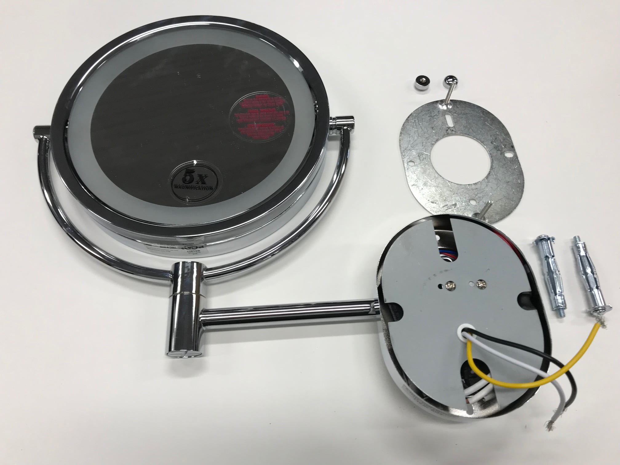 LED Lighted; 5X & 1X Magnification; Chrome Finish, Direct Wire Only; Single Heavy Arm Allows the Mirror to Extend up to 9.5″ from the Wall; Mirror Swivels 360 Degrees to any Angle