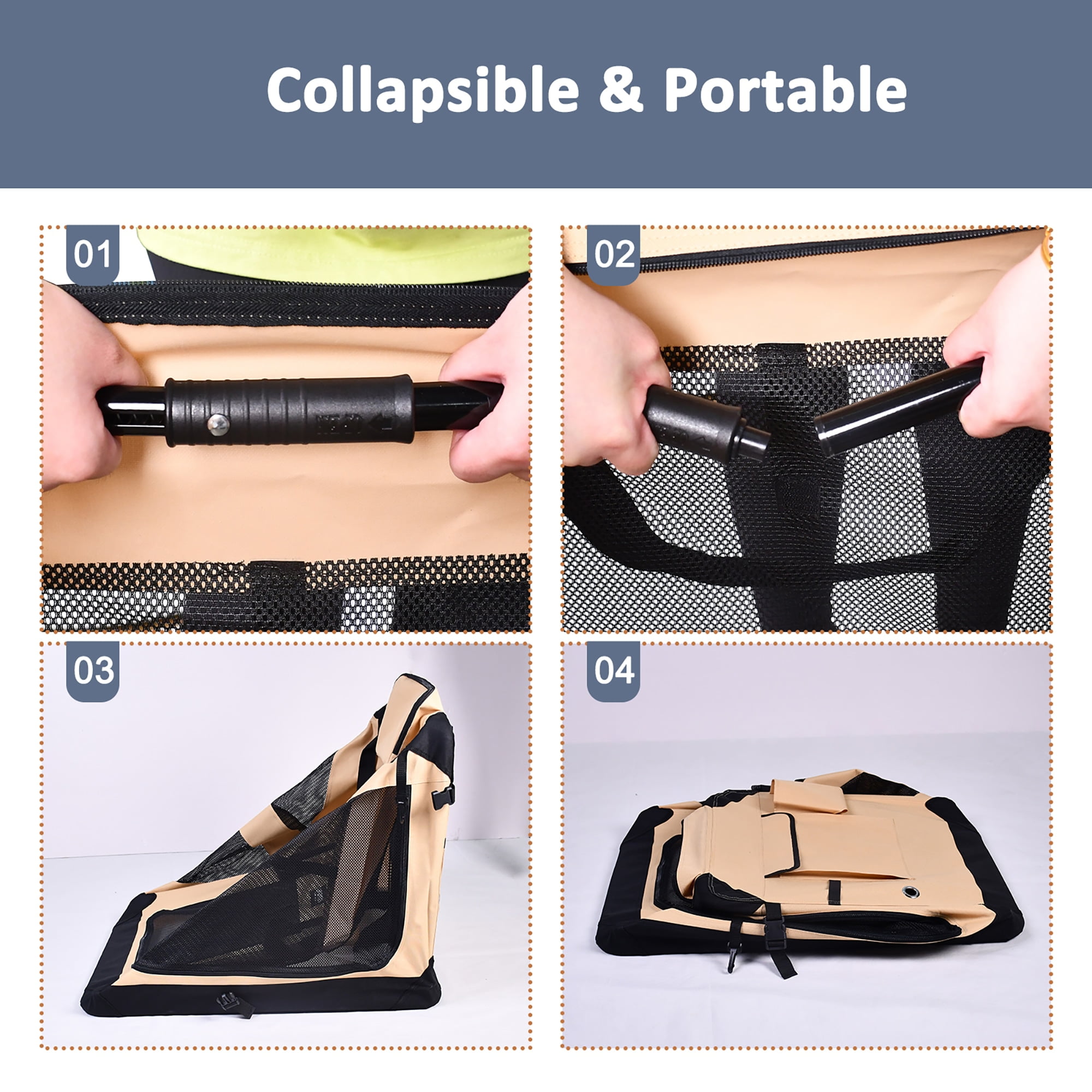 JESPET: 30″ Soft Pet Crate – Beige – Dogs & Cats Up to 50 lbs, 3 Door Folding Kennel, Indoor Outdoor Travel Carrier, Mesh Windows, Fleece Mat, GooPaws