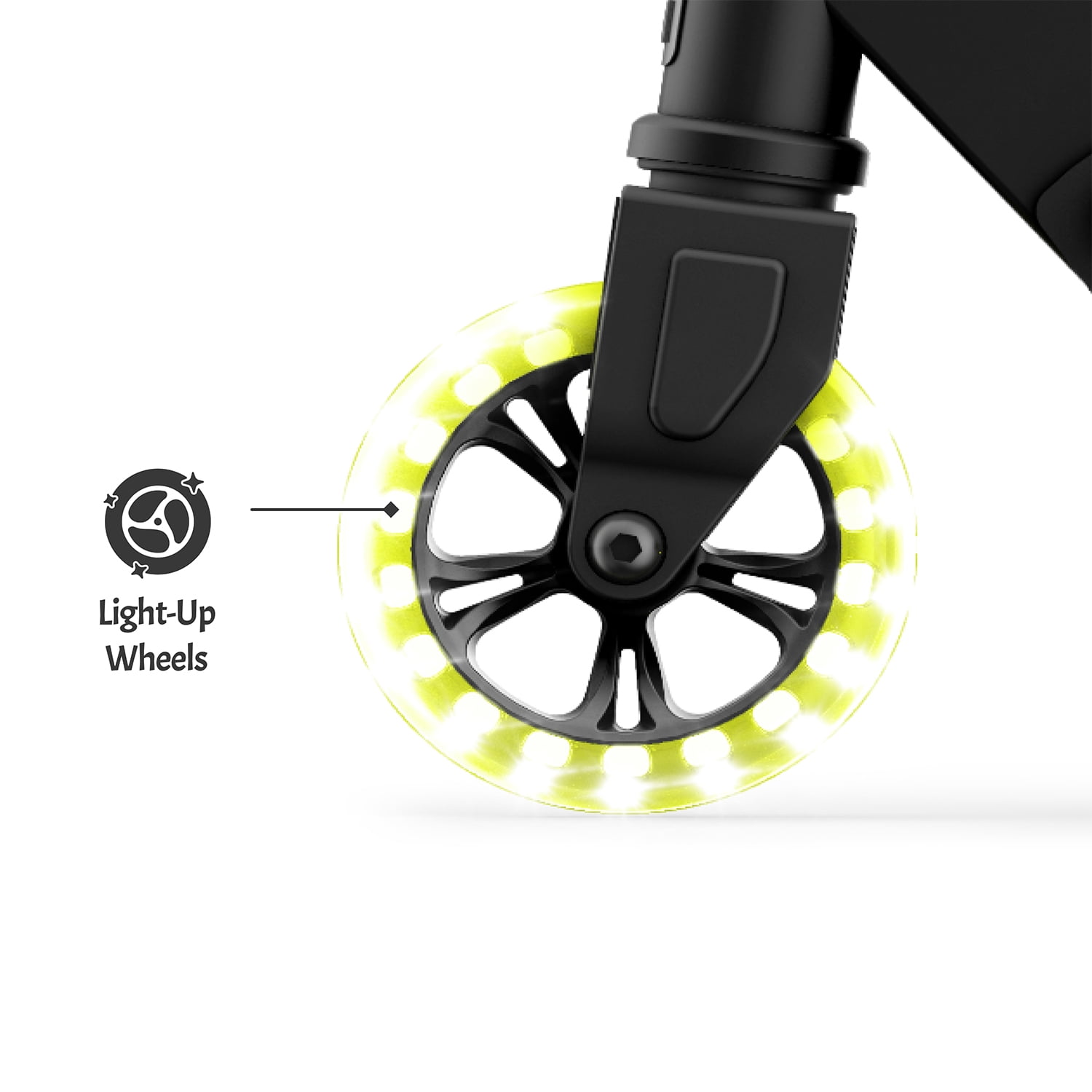 The Jetson Juno Folding Kick Scooter is a premium kids scooter that is sure to exhilarate and delight riders. The Jetson Juno Folding Kick Scooters comes with both light-up wheels and LED lights in its stem. Kids are sure to love how every ride they take on the Jetson Juno is guaranteed to be a colorful ride that they won’t forget. The Jetson Juno Folding Kick Scooter also comes equipped with an easy folding mechanism, so it is super easy for parents to store away the Jetson Juno when play is over, or carry it when they are out and about. A super safe ride, parents will love how kids will always come to a quick and safe stop with the Jetson Juno’s rear foot break, while its durable aluminum frame will leave parents with the knowledge that this is a scooter that they can trust their kids on. The Jetson Juno Folding Kick Scooter is recommended for ages 5 and up. • Light-Up LED Wheels • LED Lights in Stem • Brake Style: Rear foot brake • Easy Folding Mechanism • 3 AA Batteries Required • Product Weight: 2.6kg • Recommended Age: 5+