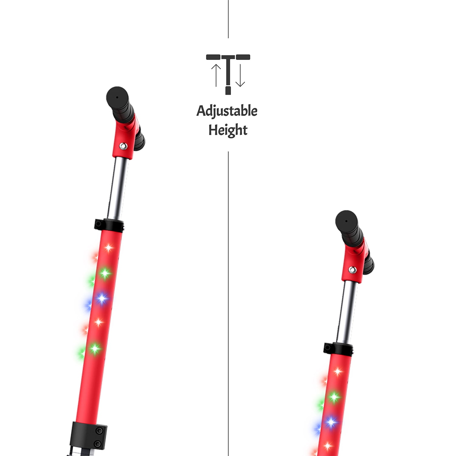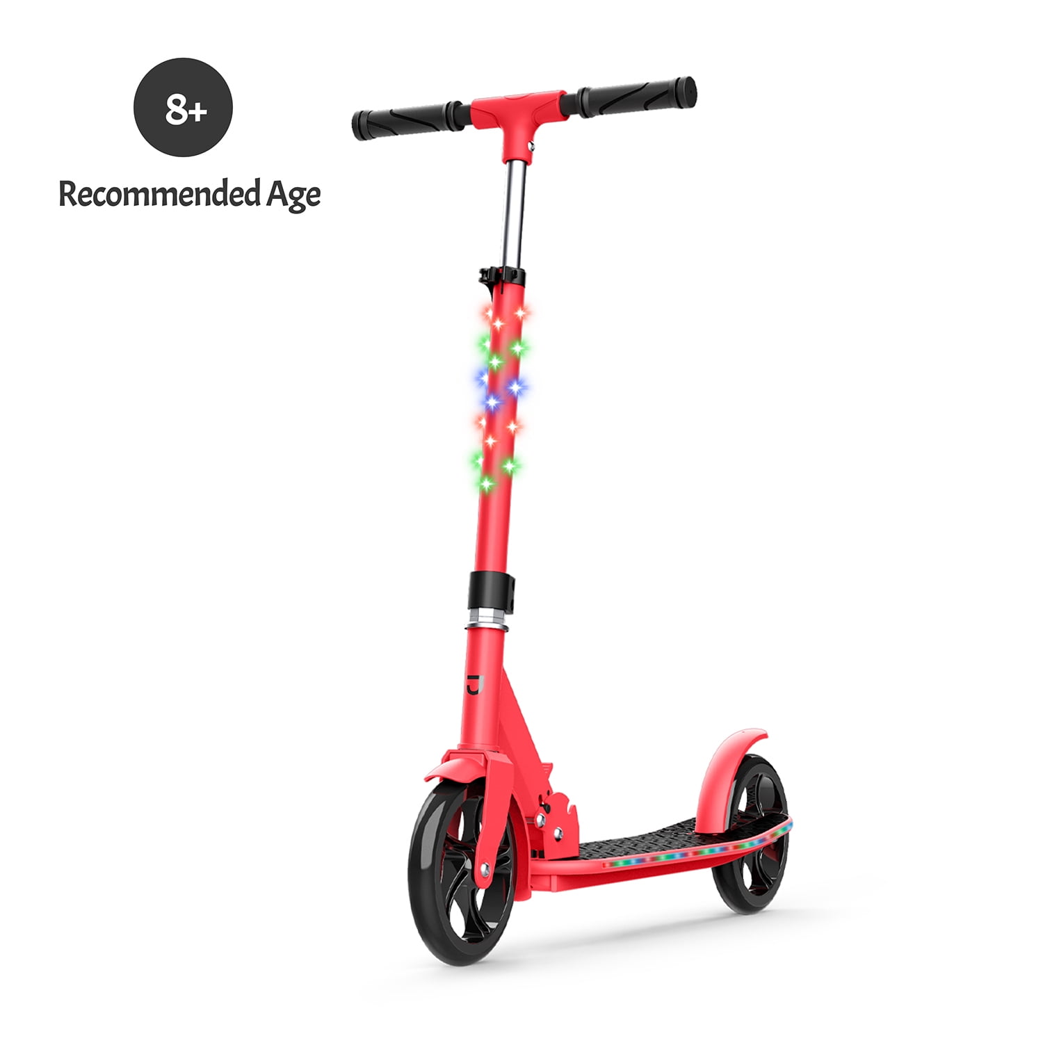 Jetson Jupiter Jumbo Kick Scooter, Red: Jupiter Jumbo Light-Up Kick Scooter 7 preprogrammed light patterns Easy folding mechanism for portability Lightweight and durable frame Weight Limit: Up to 165 lb Sturdy wide deck (Dims: 23.6″ × 6″) Height Adjustable Handlebar: Scooter grows with you (25.5″- 31.5″) Wheel Size: 8″ 3AA Batteries Required (Not Included) Brake Style: Rear foot brake Product Weight: 10 lb Recommended Age: 8+