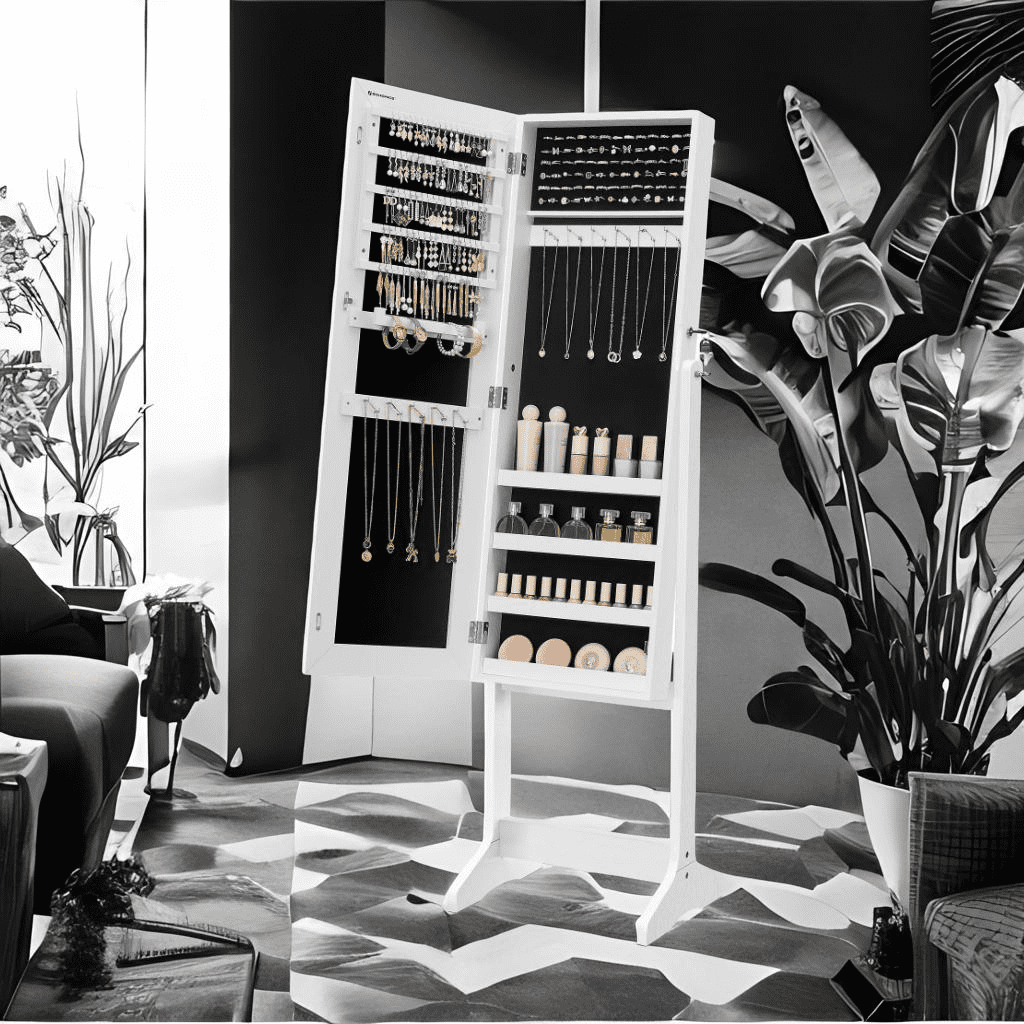 Tired of tangled necklaces and scattered earrings? This jewelry cabinet is your dream come true! Loved for its spacious design, it organizes rings, necklaces, and more in one stylish spot. The full-length mirror lets you admire your outfit while the sturdy, velvet-lined interior keeps treasures safe. Mostly pre-assembled, it’s a breeze to set up—just attach the base and you’re done! Perfect for gifting or treating yourself, it’s the ultimate solution for jewelry lovers. Declutter in style today!