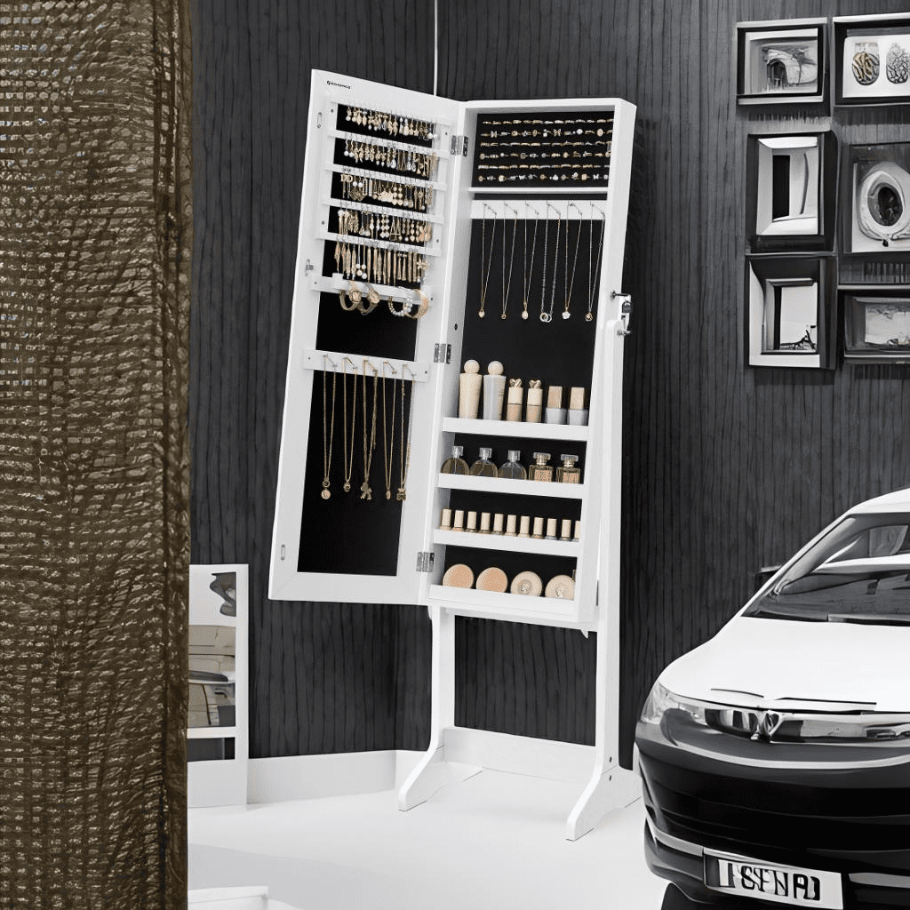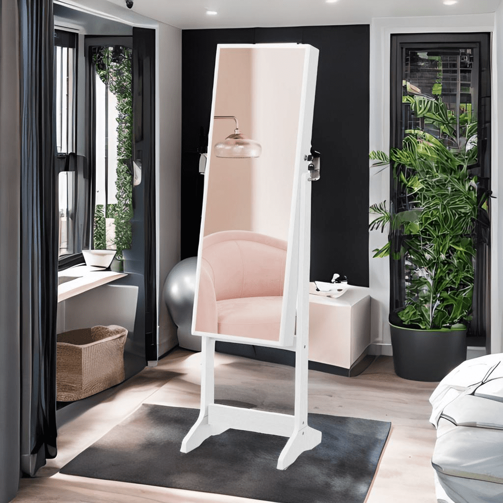 Full-Length Elegance: A sleek, narrow-frame mirror lets you admire your entire outfit, offering a wider viewing surface for head-to-toe style checks. Organized Luxury: Store and display your treasures with 90 earring slots, 78 ring slots, 22 necklace hooks, and 4 shelves for all your beauty essentials. Protect & Preserve: Built with durable MDF and soft velvet lining, this cabinet keeps your jewelry safe and scratch-free. Quick & Easy Setup: Arrives mostly pre-assembled—just attach the base and enjoy your stylish, functional armoire in minutes. The Perfect Gift: Surprise loved ones with this lockable, tasteful jewelry cabinet—a thoughtful upgrade from chocolates or flowers.
