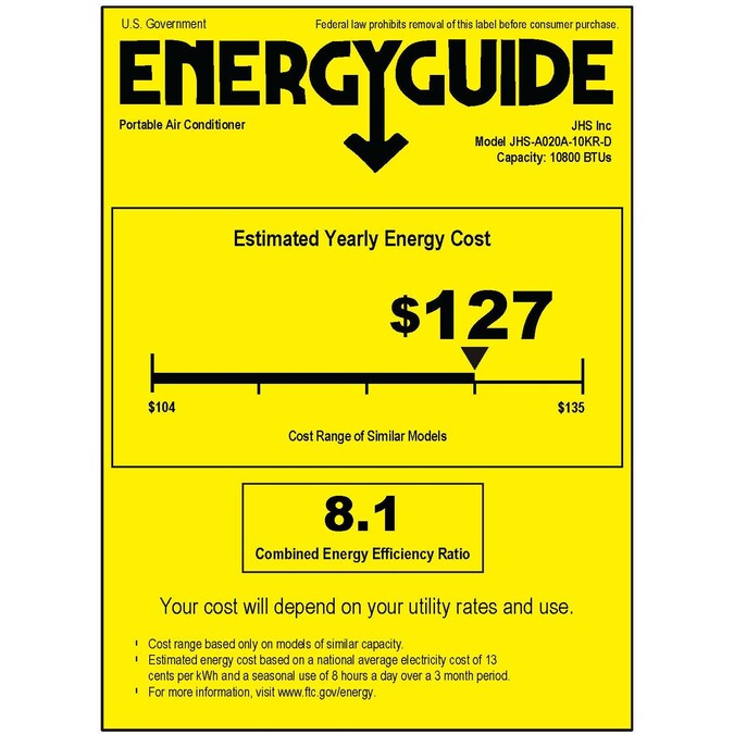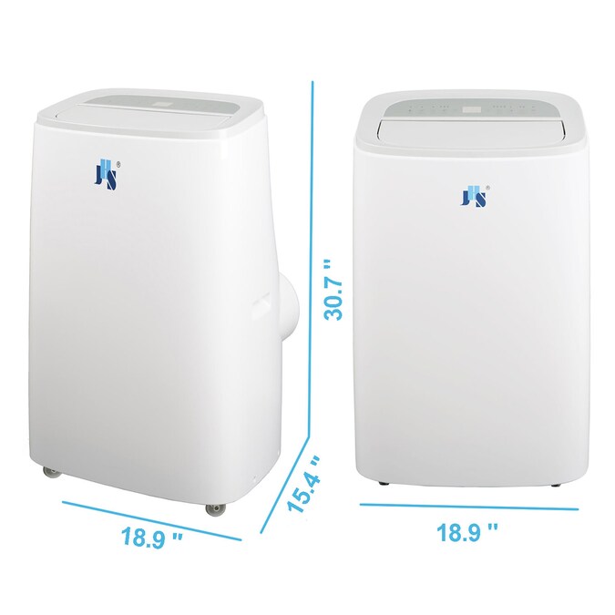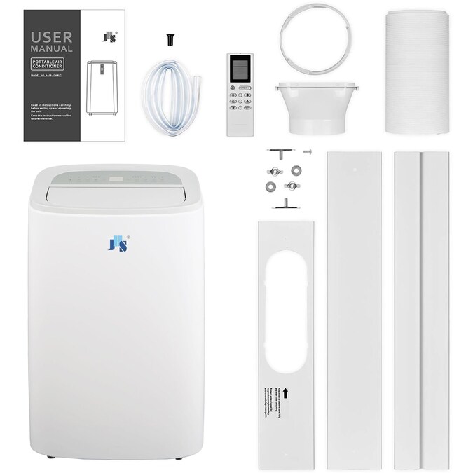 - JHS 10,800 BTU DOE vented portable air conditioner suitable for cooling spaces up to 550 sq ft