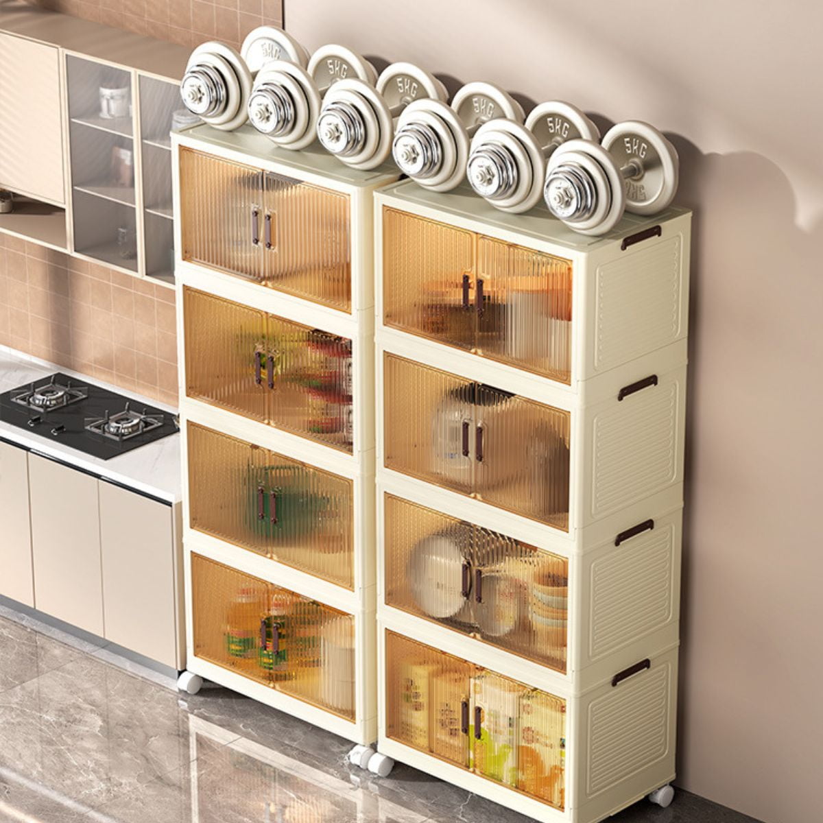 Jiarui 4 Tier 50cm Stackable Plastic Storage Bins with Lids, Collapsible Closet Organizers and Storage with Wheels