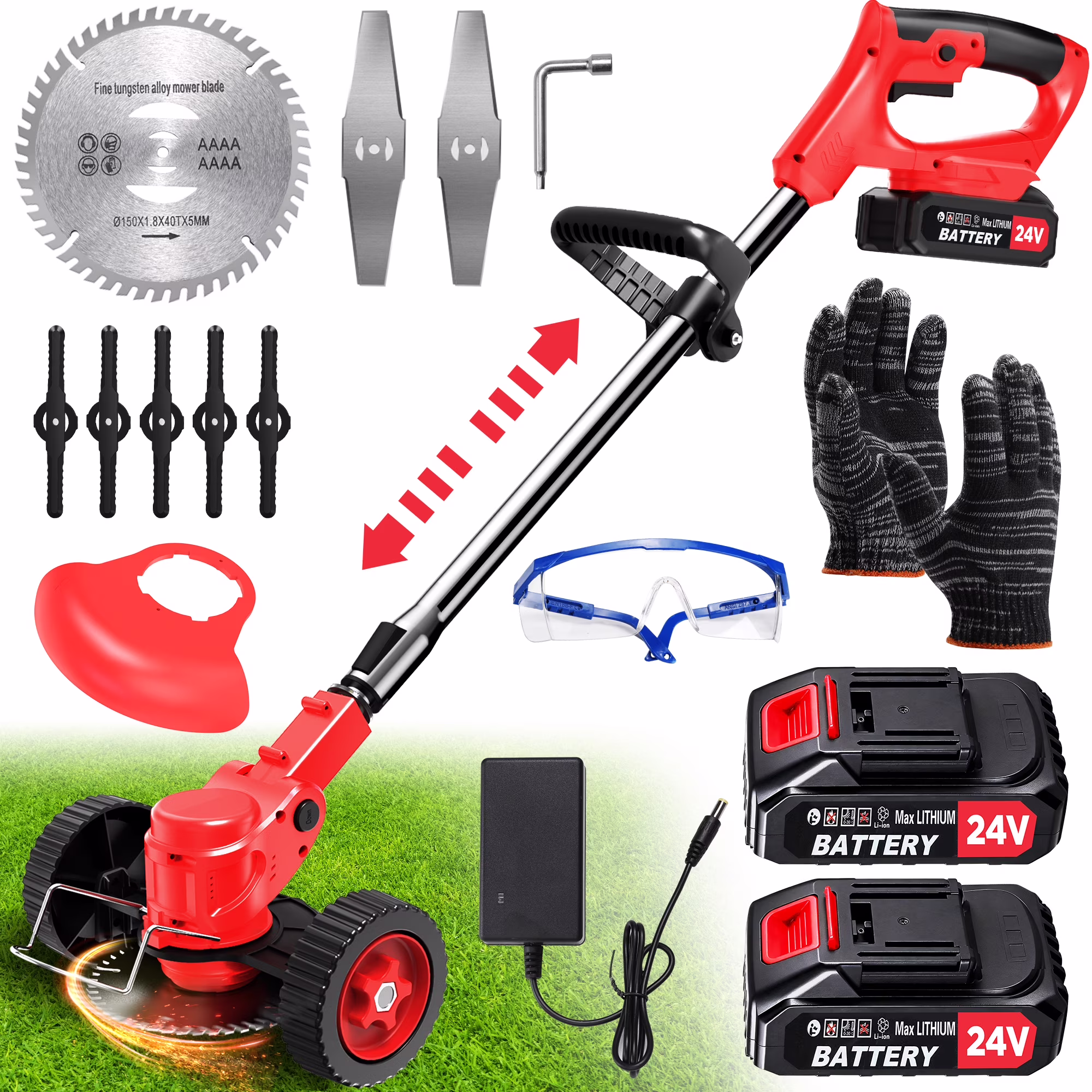 Jinyi Electric Cordless Grass String Trimmer Lawn Edger Weed Eater Cutter + 2 Battery