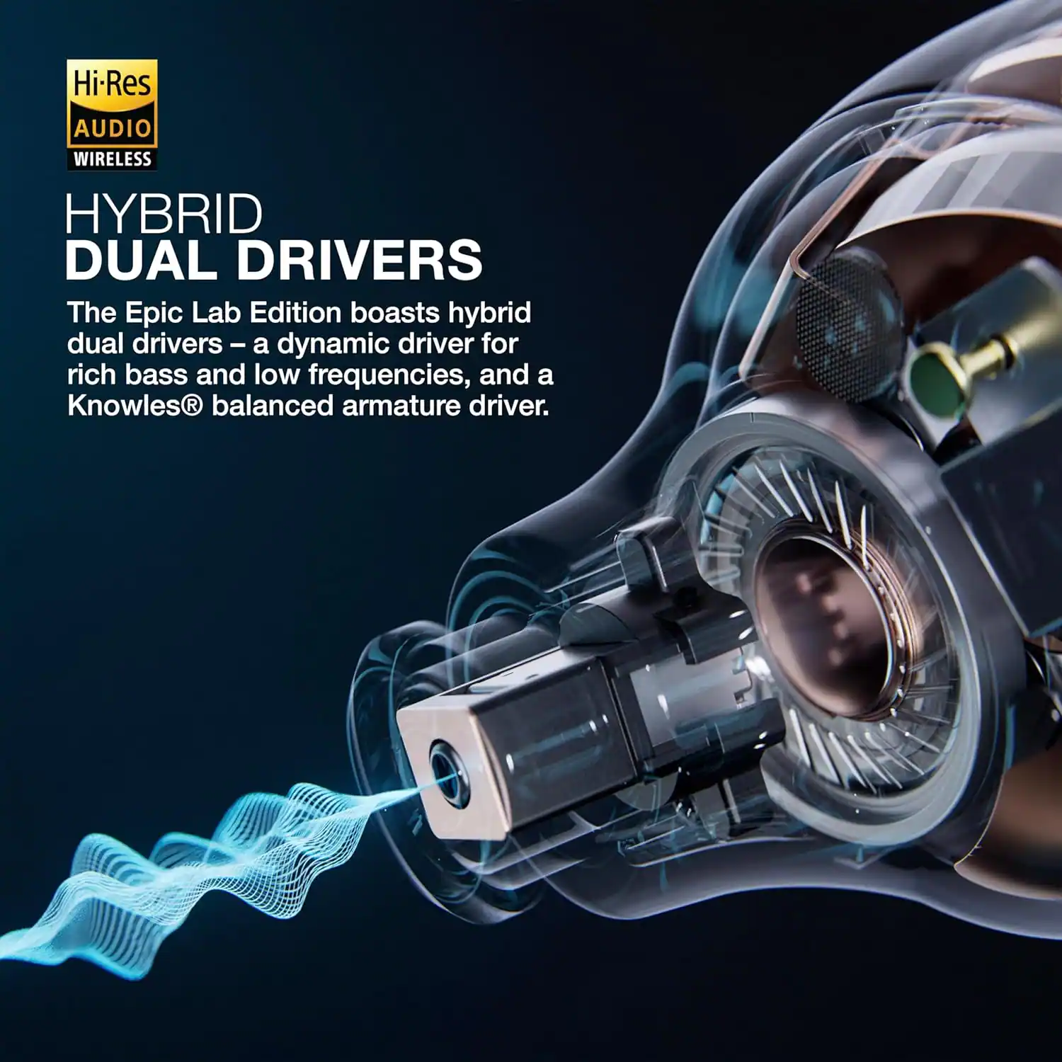 The Epic Lab Edition boasts hybrid dual drivers – a dynamic driver for rich bass and low frequencies, and a Knowles® balanced armature driver for exquisite high frequencies. This fusion of drivers results in unparalleled, well-balanced, and crystal-clear sound quality.