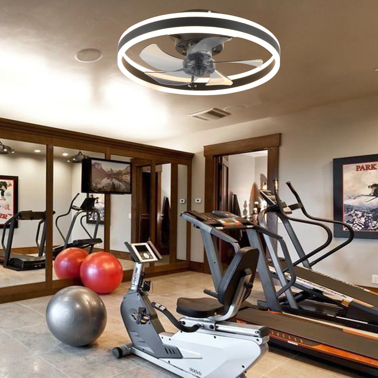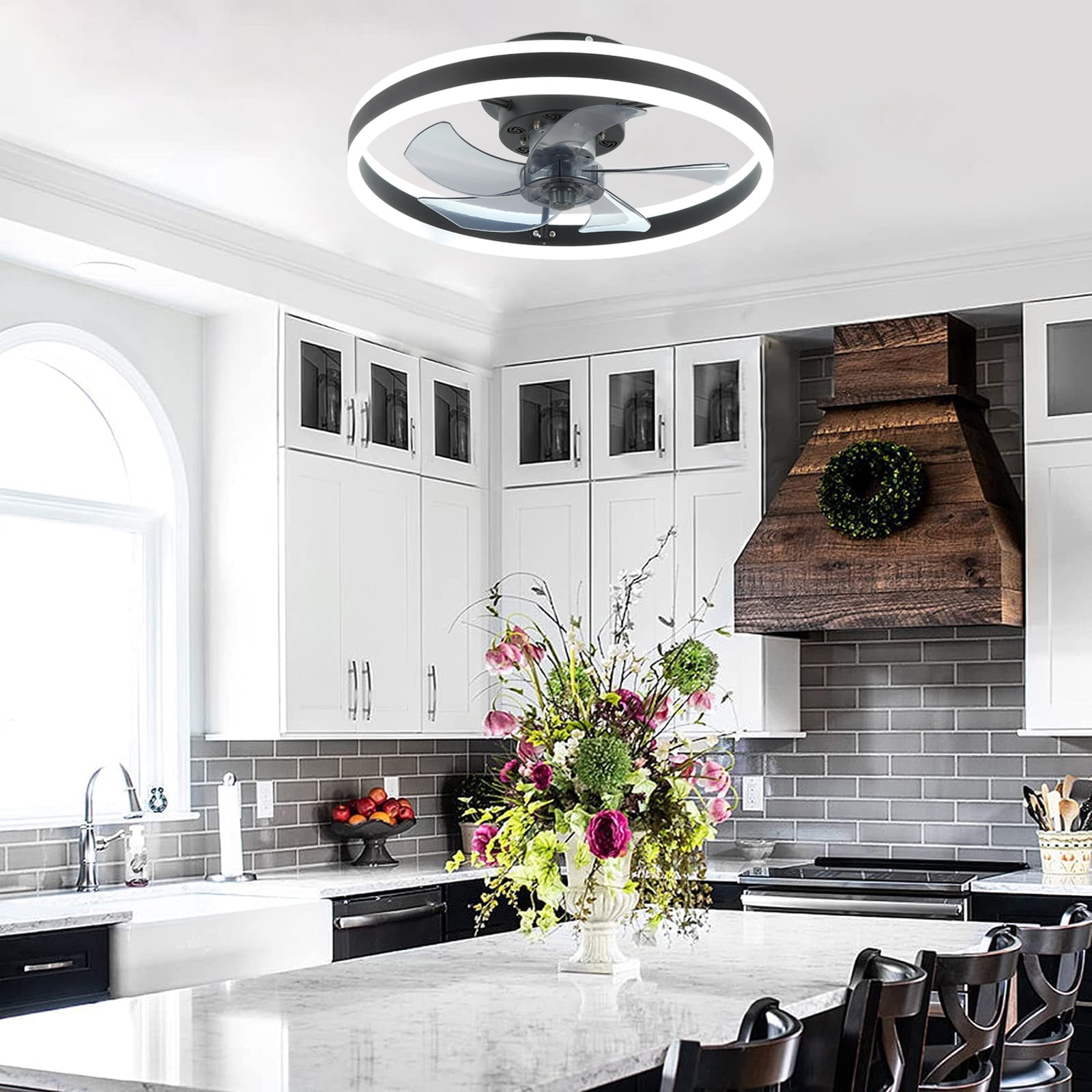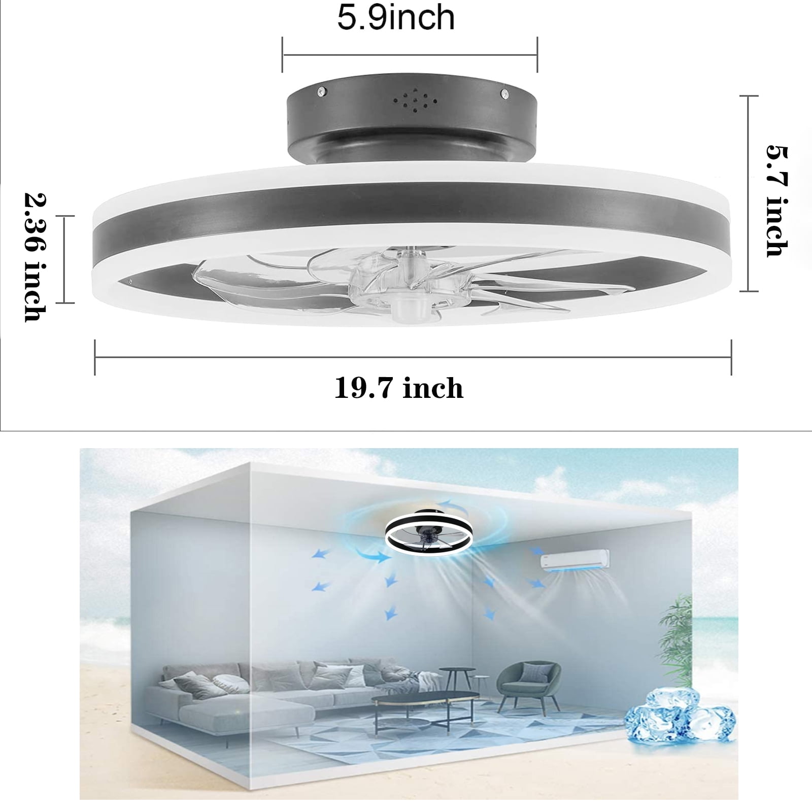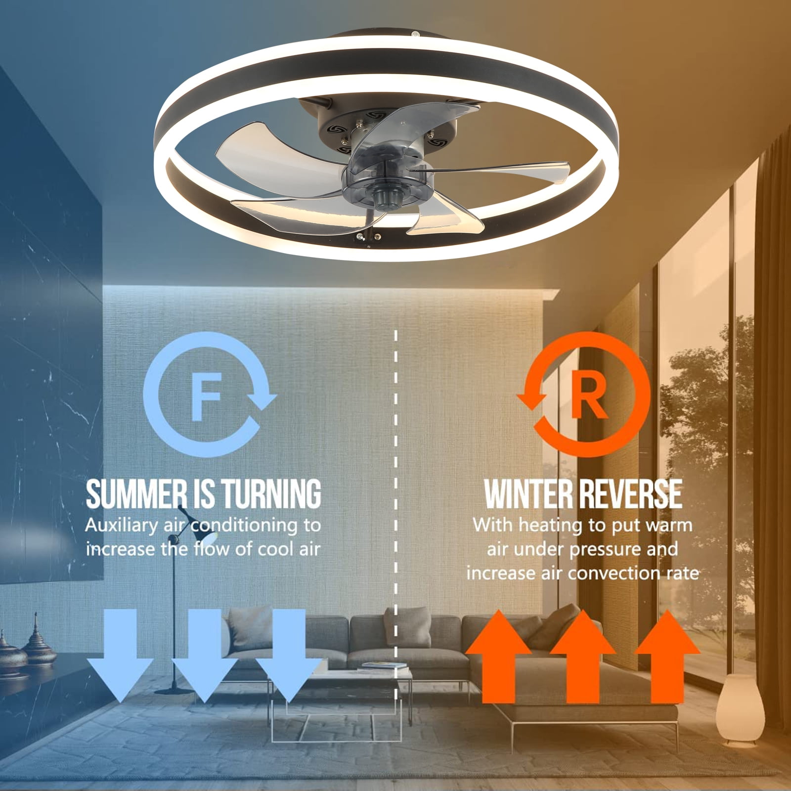 JLPAN Ceiling Fans with Lights, Low Profile Flush Mount Modern Bladeless Ceiling Fan and Remote Control, 19.7″ Dimmable LED 3 Colors and 6 Speeds – Black