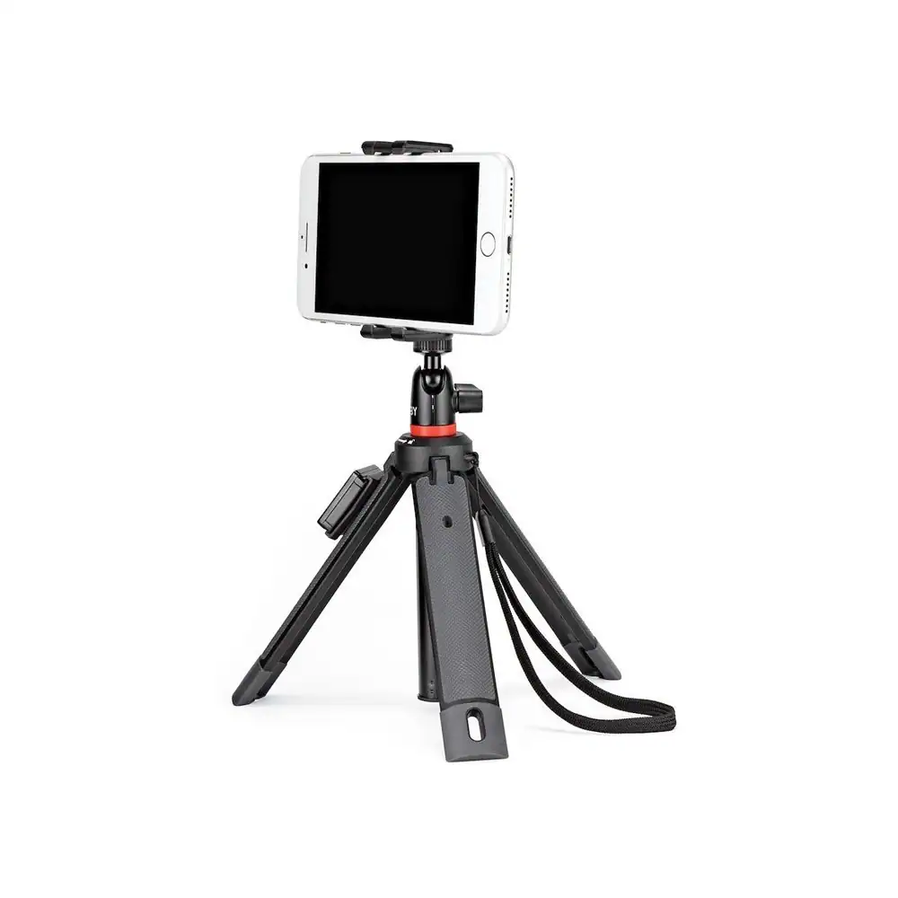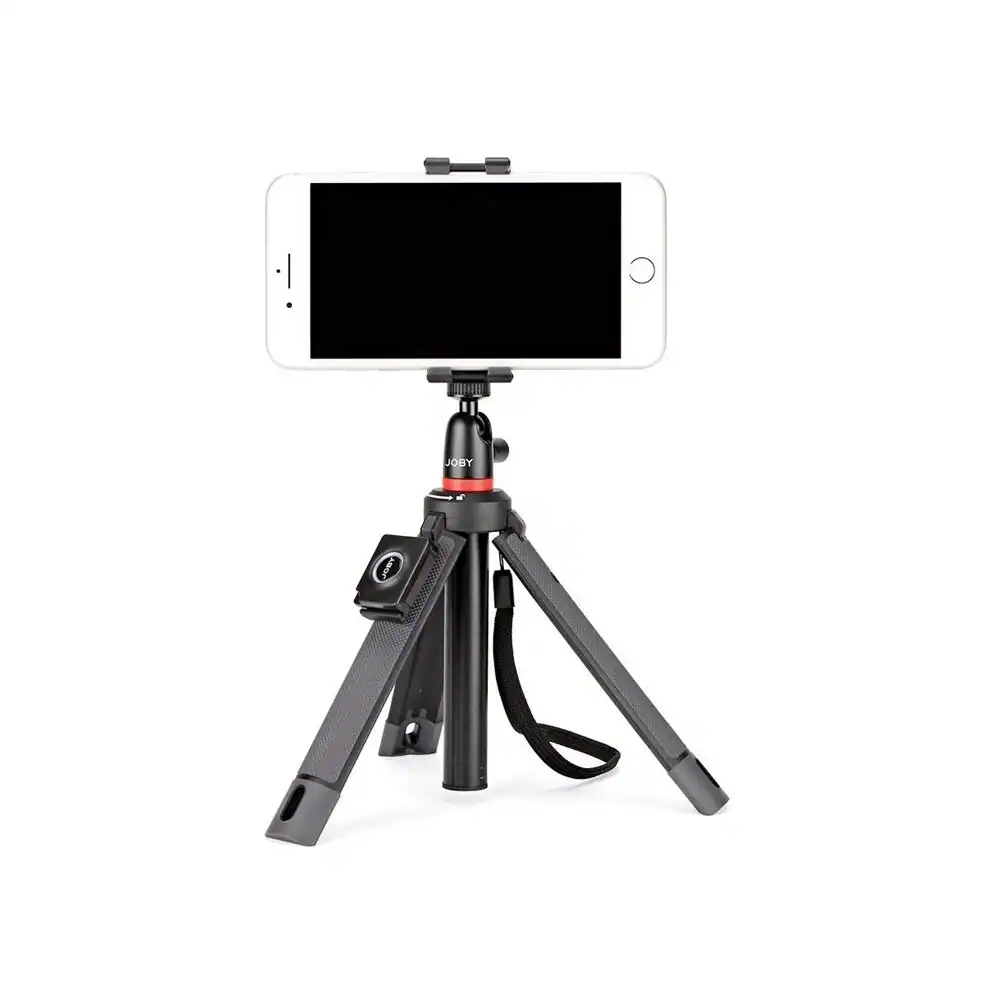 Capture steady, clear photos with this Joby TelePod mobile tripod. Clever design lets you use it as a handgrip, monopod, tripod or stand, and it holds smartphones and small 360-degree cameras. Pair this Joby TelePod mobile tripod with GoPro, Flash and other mounts, and use the included Bluetooth remote shutter to trigger shots from a distance.