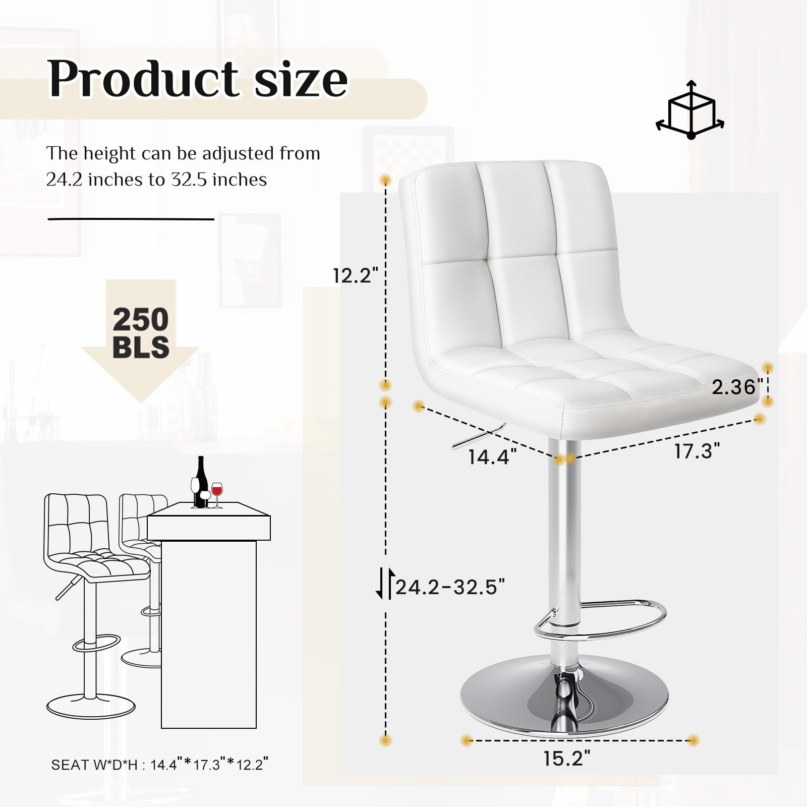 JOINSUN Bar Stools Set of 2, Armless Hydraulic Adjustable Swivel BarStools for Kitchen Island