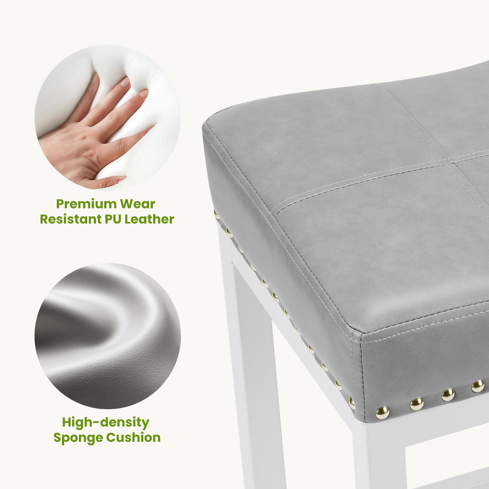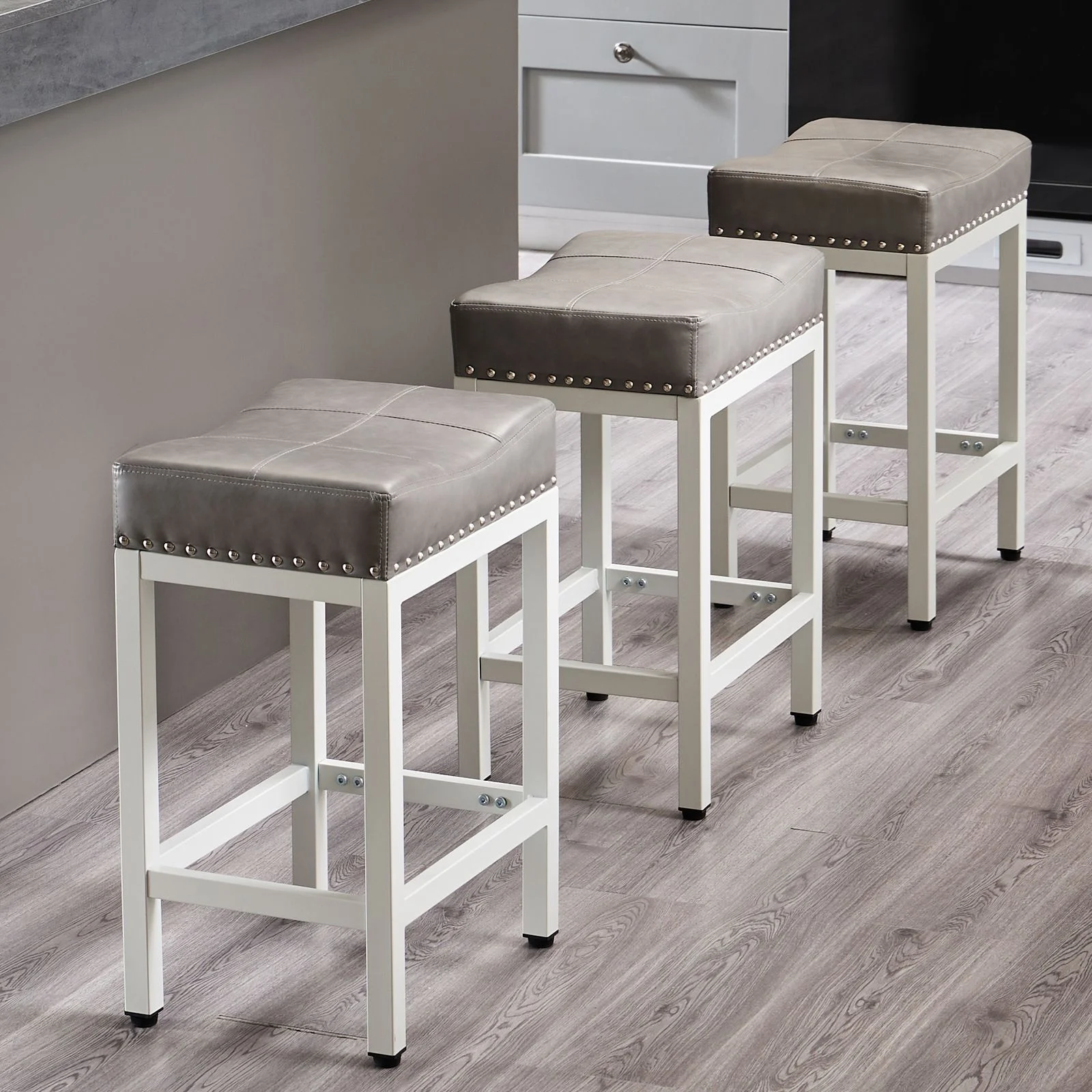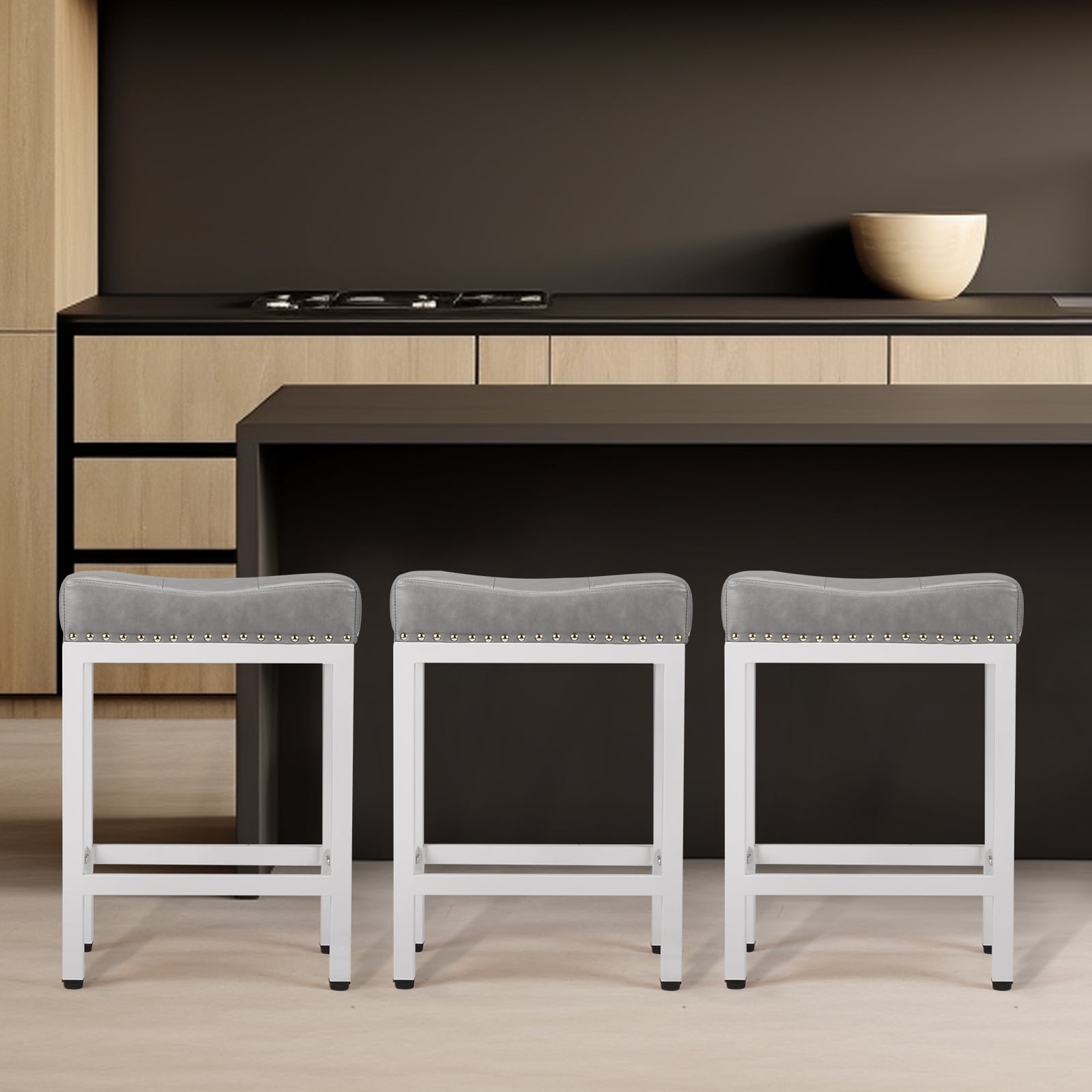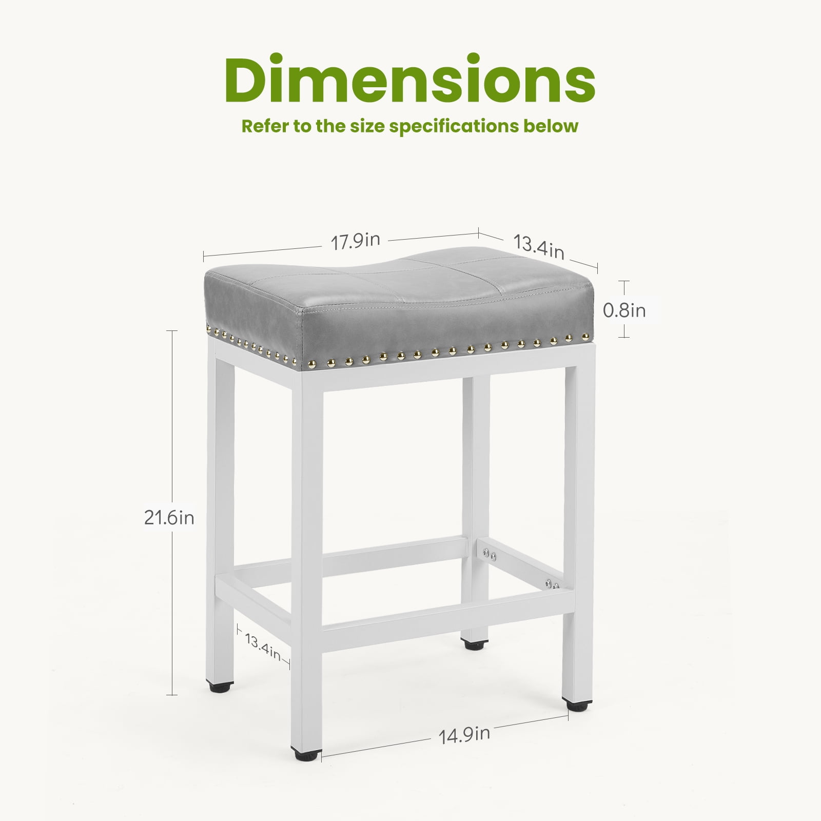 JOINSUN Set of 4, Bar Stools 24 Inch – Stylish Counter Height Chairs, With Metal Bases and PU Leather Seats, For Kitchen Island, Gray
