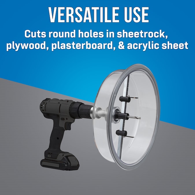 • VERSATILE USE: Cuts round holes in plywood, Sheetrock, plasterboard, and acrylic sheet up to 1-1/16-in (2. 7 cm) thick and can be used with any variable speed drill