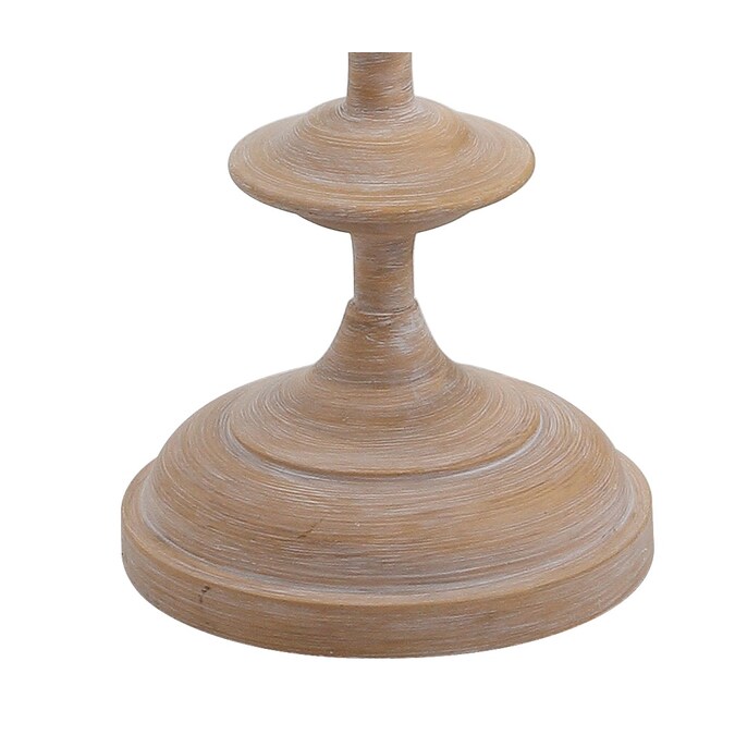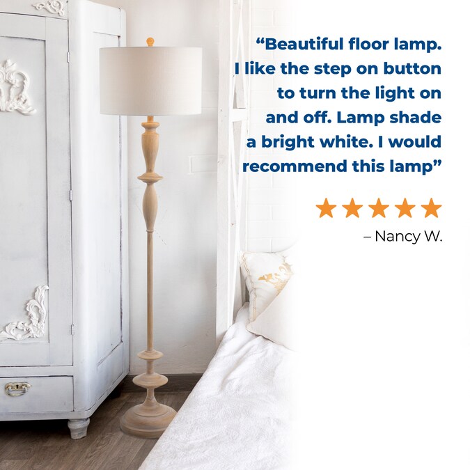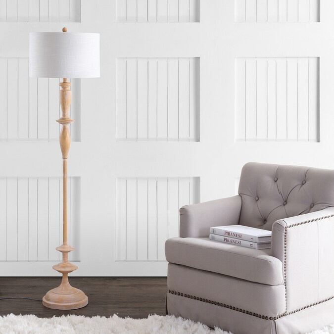 - Simple and understated, this turned wood-finished floor lamp stuns in any setting