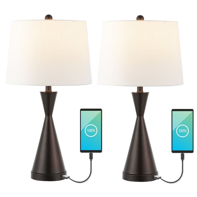 - Includes a linen-look hardback empirical shade and USB charging port for mobile devices