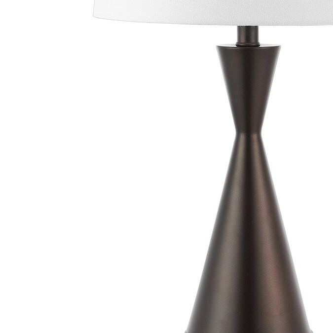 A retro metal silhouette and classic drum shade give this pair of lamps a clean, midcentury look; Perfect for resort or office interiors, these lamps include energy-saving LED bulbs for bright, warm light; A pair of these can add understated style to a bedroom, living room, or entry console