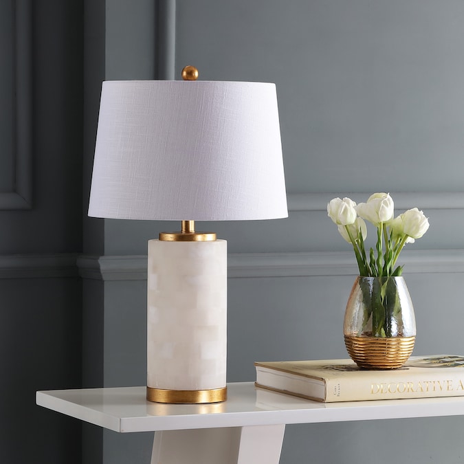 - Alabaster and gold add luxurious touches to a classic column table lamp silhouette