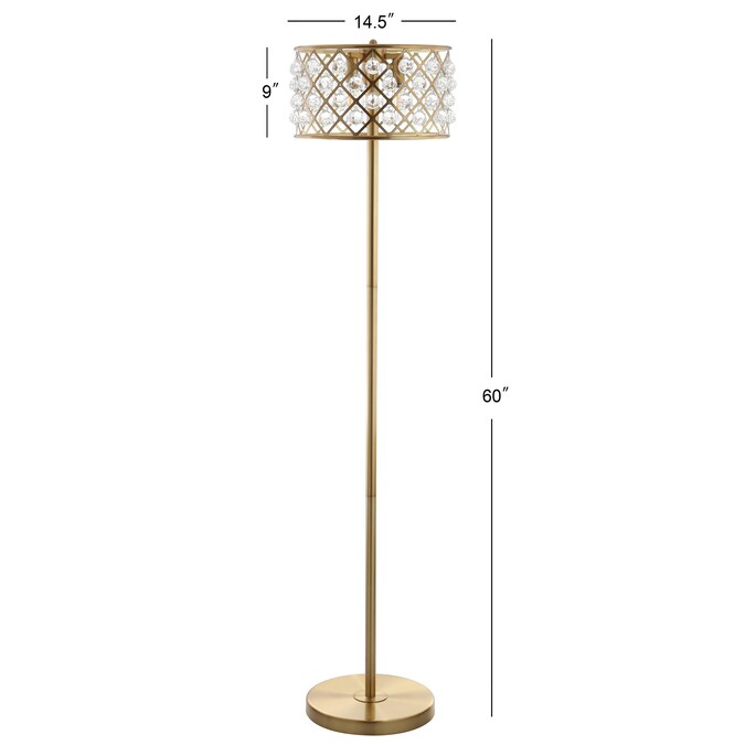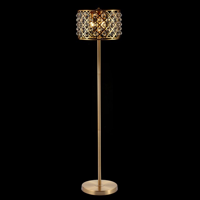 - Crystals accent the crisscross metal drum shade of this contemporary floor lamp