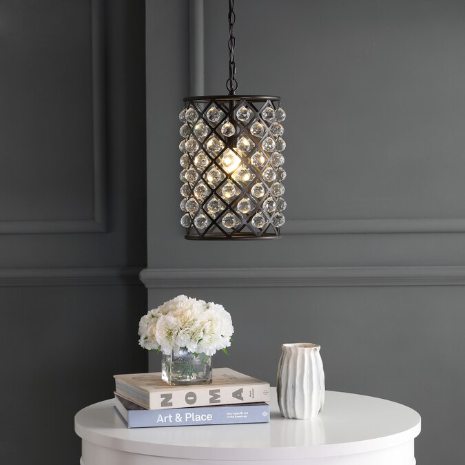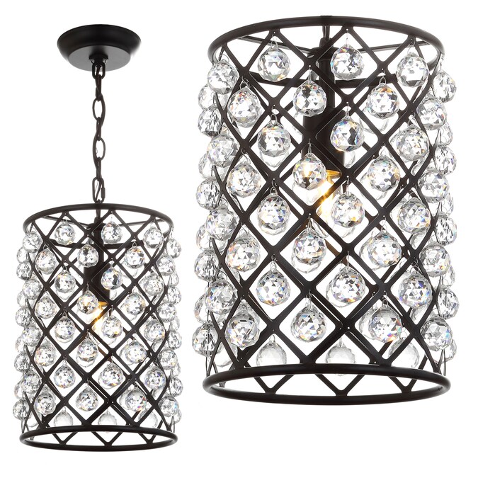 Modern simplicity meets organic beauty in the breathtakingly unique crystal and iron pendant. Hand-polished, multifaceted clear crystal spheres shimmer like dewdrops in a circular forged-iron grid with an oil-rubbed bronze finish. The hanging length is adjustable for multiple ceiling heights, from 18.5″ of drop to 90.5″ of length.