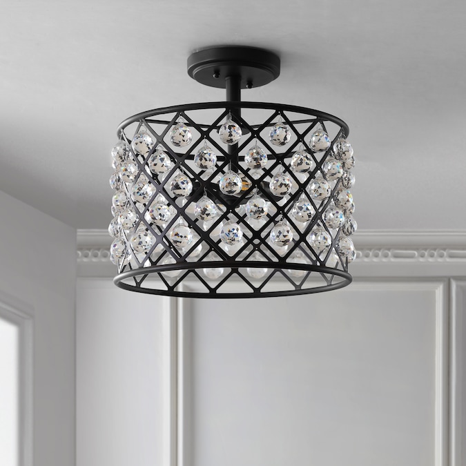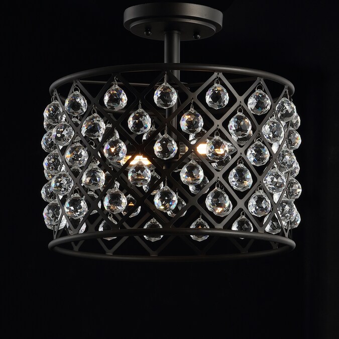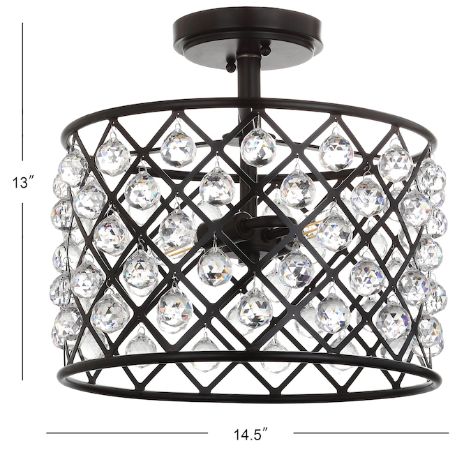 Modern simplicity meets organic beauty in the breathtakingly unique crystal and iron semi-flush mount Hand-polished, multifaceted clear crystal spheres shimmer like dewdrops in a circular forged-iron grid with an oil-rubbed bronze finish. The semi-flush silhouette is perfect for adding a glamorous element to bedrooms, bathrooms, and other spaces with standard ceiling heights.