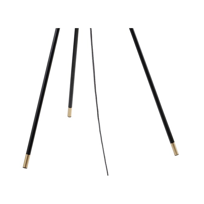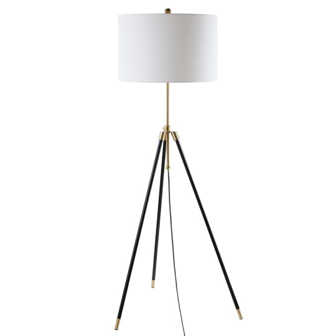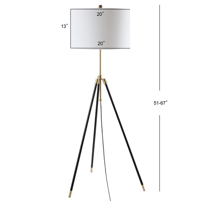This tall, trim, tapered tripod takes a stand in warm brass and glossy black, topped by a crisp white cotton drum shade that adds a classic note to the modern sculpture feel. A drop-down cord wrapped in silk boasts a step-on switch for illuminating its replaceable LED bulb. With the top third of the base adjustable in height, you can properly scale it to sit behind any height sofa or chair.