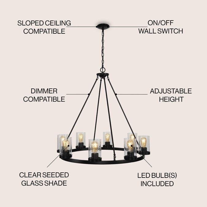 - Takes 8 bulbs and compatible with 9W LED or 40W TYPE “A” or 13W CFL