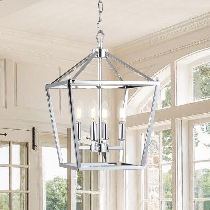- An open lantern-style design gives this pendant a welcoming aesthetic