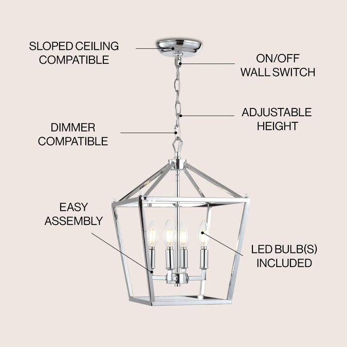 - Adjustable chain link makes this fixture suitable for most ceiling heights