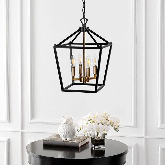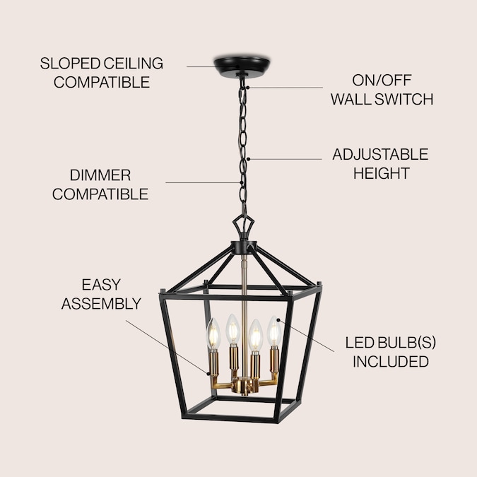 - An open lantern-style design gives this pendant a welcoming aesthetic