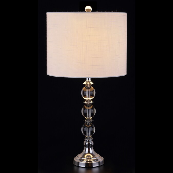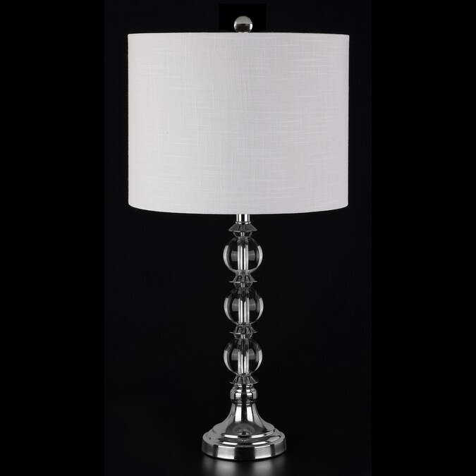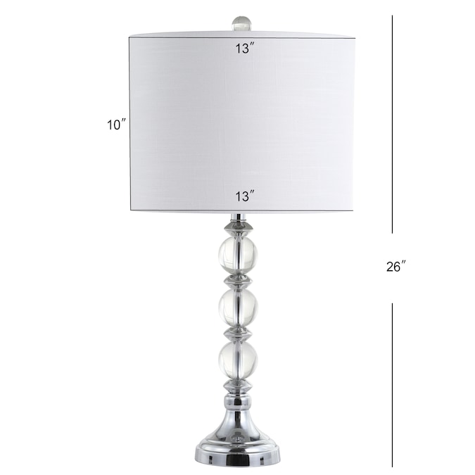 Make room for traditional elegance, as a column of crystal orbs and faceted gems stacks up and sparkles from every angle. The round base of our lamp continues the aesthetic while a slightly tapered linen shade enhances the light’s reflection. Topped with a crystal finial and finished with a silk-wrapped 60′ cord, this lamp will add traditional glamour to any home.