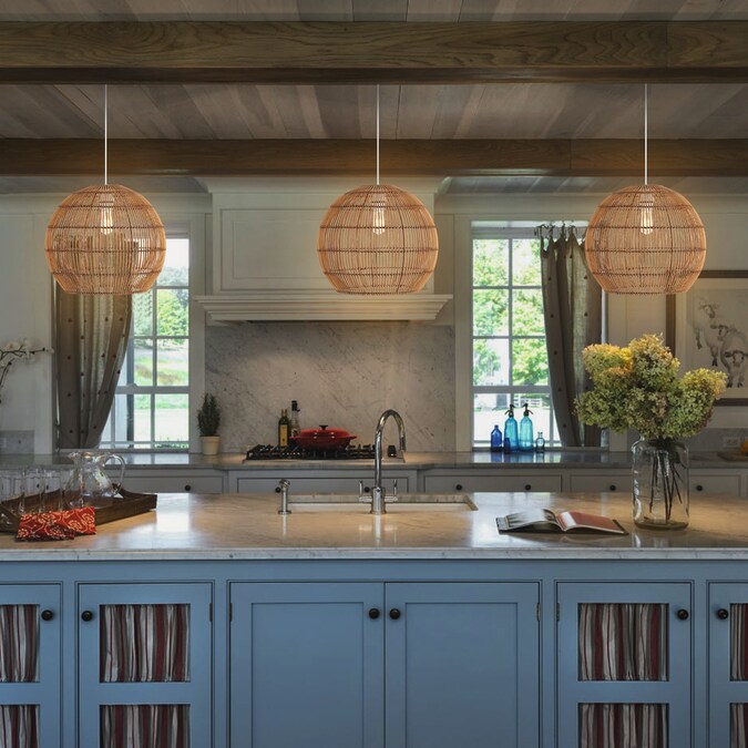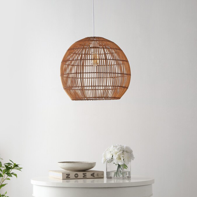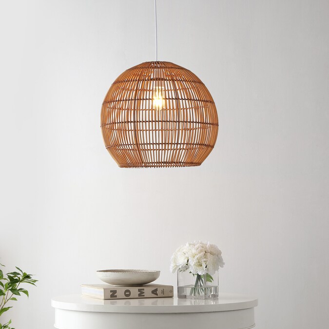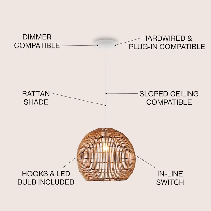 Modern design meets traditional craftsmanship in our woven globe pendant; A single LED bulb provides bright, warm light; Made from natural rattan woven onto a sturdy metal frame, this ceiling fixture adds a Bohemian touch to your living room, bedroom, or dining room; Plug in or hardwire