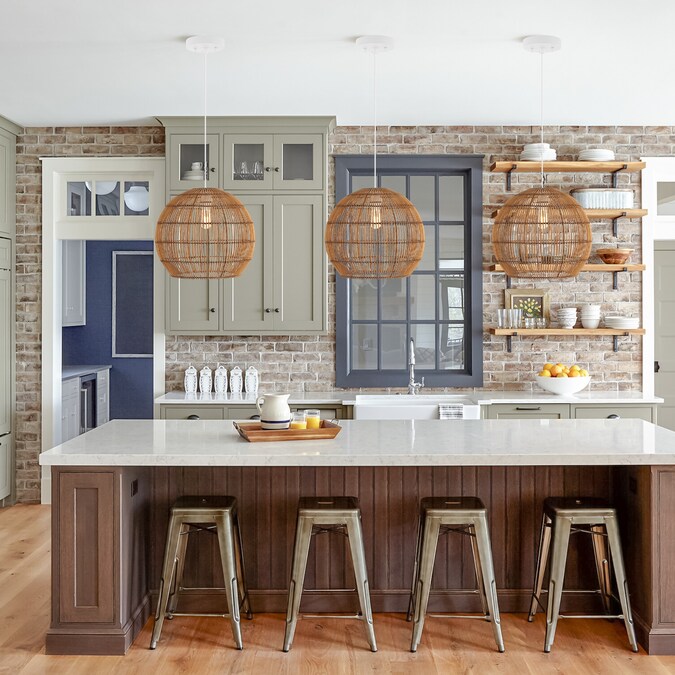 - Adjustable-height pendant works best for ceilings up to fourteen-feet high