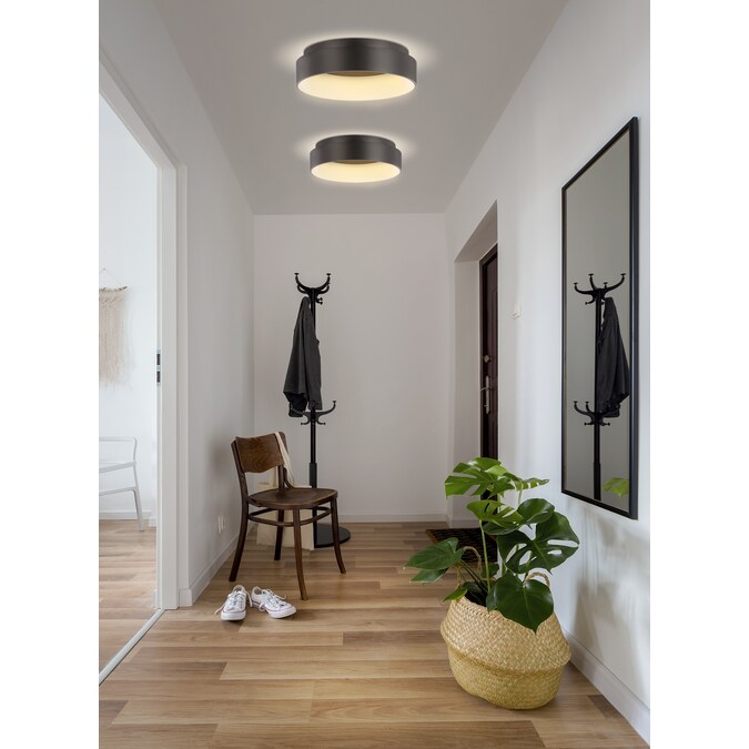 Reliable and low maintenance, LED lights are a favorite in commercial spaces for their modern appearance and low cost of use. Add modern styling to that list of benefits and you have this ring flush mount which is low maintenance enough for commercial use, but designed in a scale more suitable for the home. Reducing your needs to dust or change bulbs, the metal frame in simple black is an easy addition to any room.