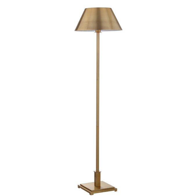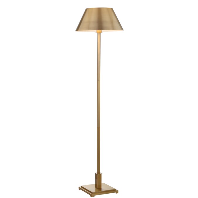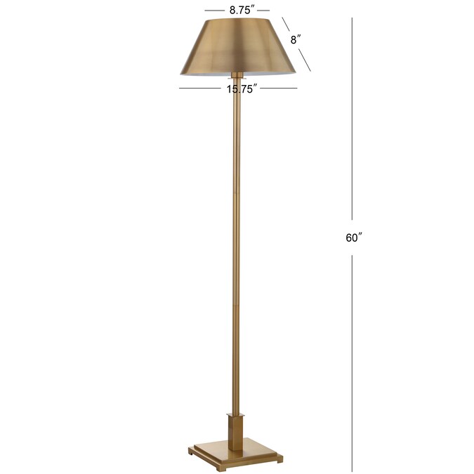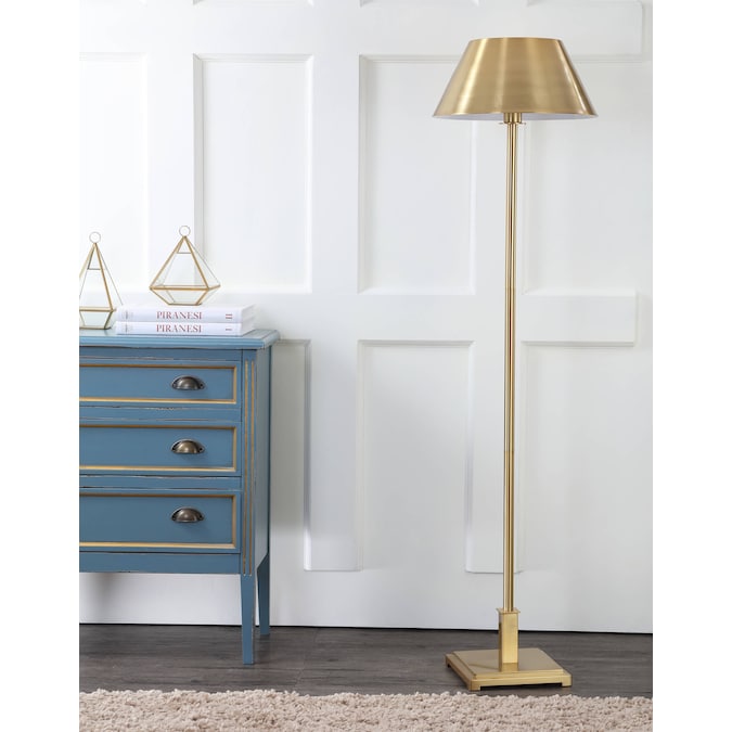 - Brushed brass lampshade and base in a classic floor lamp silhouette and scale